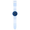 Часы Swatch SB03N102 — это стильный и современный аксессуар для тех, кто ценит лёгкость и комфорт. Часы идеально подойдут как для мужчин, так и для женщин. Корпус из биокерамикиБиокерамикаБиокерамика — это материал, который на две трети состоит из керамики, на одну треть — из биопластика. Он сочетает в себе лучшие качества обоих материалов и обладает прочностью и шелковистой на ощупь текстурой., а ремешок — из однотонного матово-синего силикона. Темно-синий циферблат подчеркивает белые акценты на темных стрелках. Секундная стрелка, прообразом которой стала стрелка компаса, усиливает дух приключений. На часовую и минутную стрелки нанесено люминесцентное покрытиеЛюминесцентное покрытиеПозволяет считывать показания времени в темноте. Производители наносят на стрелки, часовые индексы, безель или поверхность циферблата светонакопительный состав, дающий холодное свечение., которое светится в темноте, создавая необычное изображение. Водозащита 30 метров делает часы практичными для повседневного использования. Эти часы подойдут для повседневного ношения и станут ярким акцентом в вашем наряде.