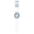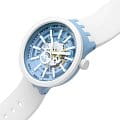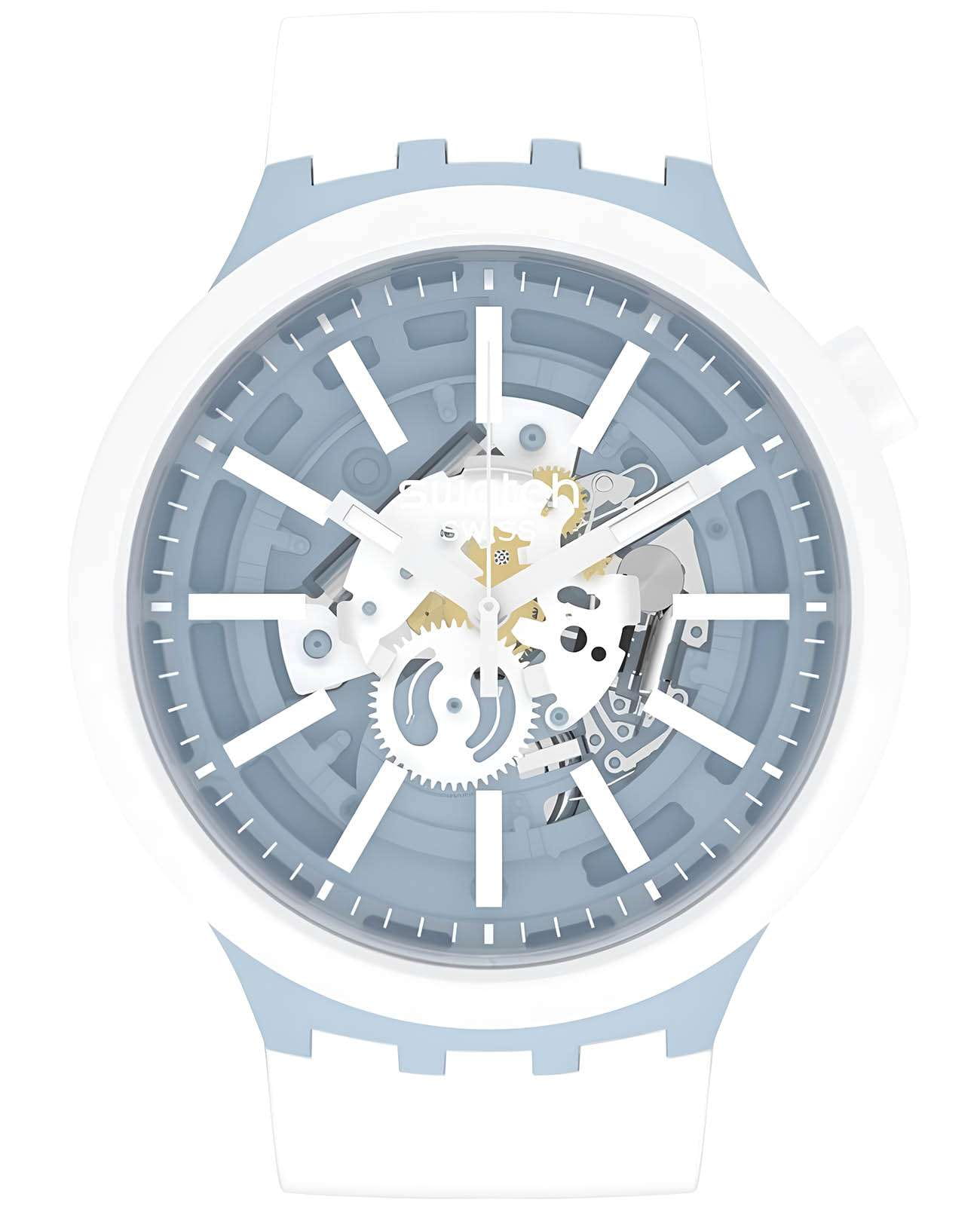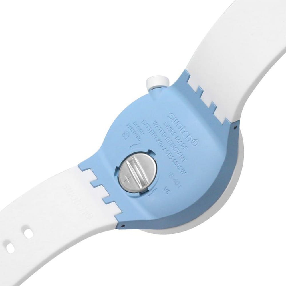 Часы Swatch SB03N103 — это стильный и современный аксессуар для тех, кто ценит лёгкость и комфорт. Часы идеально подойдут как для мужчин, так и для женщин. Центральный элемент этой модели часов — большой корпус со стеклом из био-материала, украшенный 3D-циферблатом с принтами на индексах. Корпус и безельБезельВнешний ободок, закрепляющий стекло. В спортивных часах так называется поворотное кольцо с делениями на циферблате, выполняет роль таймера – замеряет отрезки времени на шкале. Неподвижный безель – элемент декора. Однонаправленно вращающийся безель на дайверских часах позволяет фиксировать моменты погружения и выныривания на поверхность. из биокерамикиБиокерамикаБиокерамика — это материал, который на две трети состоит из керамики, на одну треть — из биопластика. Он сочетает в себе лучшие качества обоих материалов и обладает прочностью и шелковистой на ощупь текстурой., а также силиконовые тренчики подчеркивают белый принт на силиконовом ремешке этих огромных часов. На часовую, минутную стрелки нанесено люминесцентное покрытиеЛюминесцентное покрытиеПозволяет считывать показания времени в темноте. Производители наносят на стрелки, часовые индексы, безель или поверхность циферблата светонакопительный состав, дающий холодное свечение., которое светится в темноте, создавая необычное изображение. Водозащита 30 метров делает часы практичными для повседневного использования. Эти часы подойдут для повседневного ношения и станут ярким акцентом в вашем наряде.