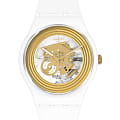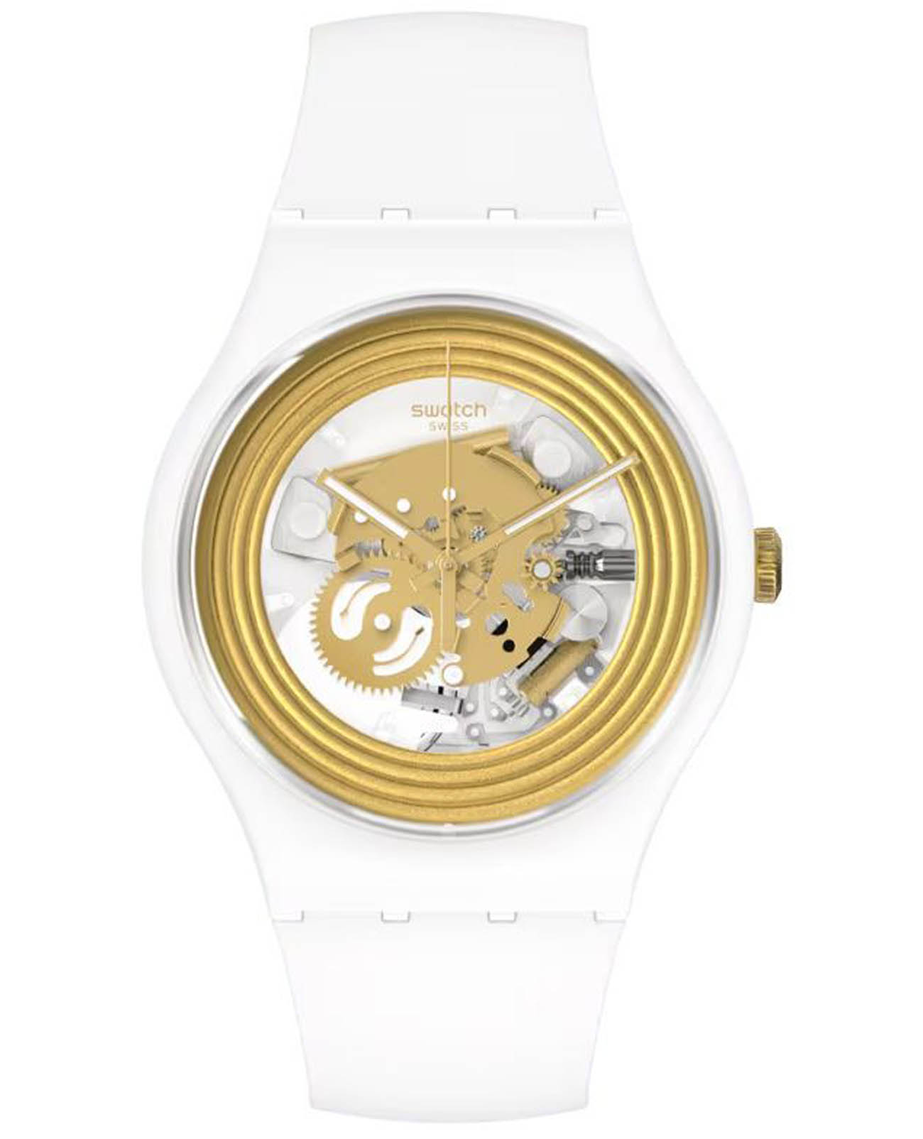 Часы Swatch SO29W107 —  эффектный и удобный аксессуар. Современный взгляд на классику. Часы имеют белый корпус из биоматериала и золотистое оформление прозрачного циферблата, в котором можно наблюдать механизм часов. Ремешок из силикона на стандартной застёжке. Внутри часов установлен надежный кварцевый механизм, который обеспечивает точность хода. Эти часы водонепроницаемы до 30 метров, что позволяет не беспокоиться о случайных брызгах или дождевых каплях. Swatch SO29W107 — это идеальный выбор для тех, кто ценит сочетание стиля, комфорта и функциональности в одном аксессуаре.