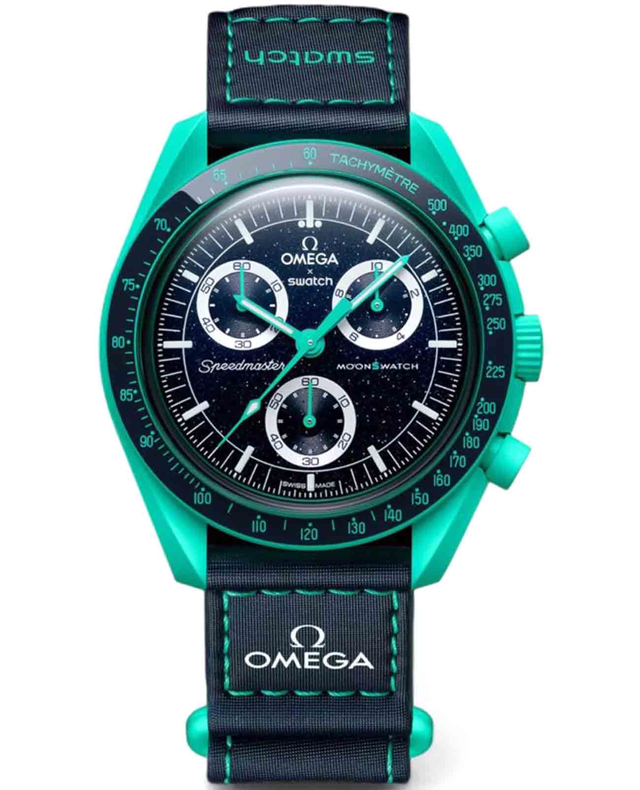 Швейцарские часы Swatch x Omega Bioceramic Moonswatch Mission on Earth: Polar Lights SO33L103 с хронографом