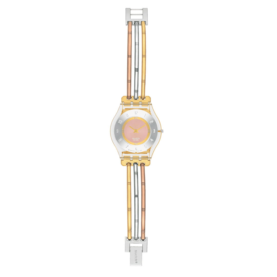Часы Swatch SS08K101A — это стильный и современный аксессуар для тех, кто ценит лёгкость и комфорт. Часы идеально подойдут как для мужчин, так и для женщин. Прозрачный корпус с золотистыми элементами из биоматериала. Розово-золотистый циферблат с минималистичными индексами и стрелками подчеркивает изысканный дизайн модели. Оригинальный металлический браслет с декоративными элементами в оттенках золота, серебра и меди с частичным PVDPVDУльтратонкое покрытие наносится в технике вакуумного напыления, сочетает в себе нитрид титана особой прочности со слоем золота или оксида хрома. Несёт в себе декоративную или защитную функцию. покрытием придает часам неповторимый характер. Водозащита 30 метров делает часы практичными для повседневного использования. Эти часы подойдут для повседневного ношения и станут ярким акцентом в вашем наряде.