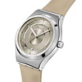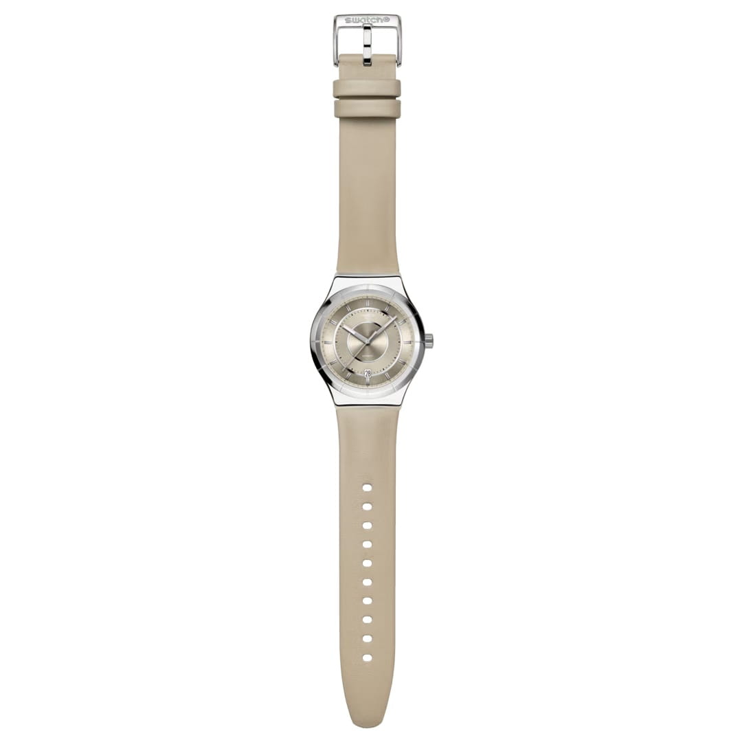 Часы Swatch YIS434 — это стильный и современный аксессуар для тех, кто ценит надежность и комфорт. Эти механические часы имеют полированный бежевый циферблат и индексы. Стрелки с люминесцентным покрытиемЛюминесцентное покрытиеПозволяет считывать показания времени в темноте. Производители наносят на стрелки, часовые индексы, безель или поверхность циферблата светонакопительный состав, дающий холодное свечение., светятся в темноте. Окошко календаря расположено в положении 6 часов. Блестящий корпус из нержавеющей стали, а через заднюю крышку с цифровым принтом просматривается механизм SISTEM51. Модель оснащена автоматическим механизмом Sistem51, который состоит всего из 51 детали и имеет запас хода 90 часов. Дополняет модель бежевый ремешок из кожи с классической застежкой. Водозащита 30 метров позволяет защитить корпус от случайных брызг или капель дождя, что делает часы практичными для повседневного использования. Эти часы станут ярким акцентом в вашем образе.