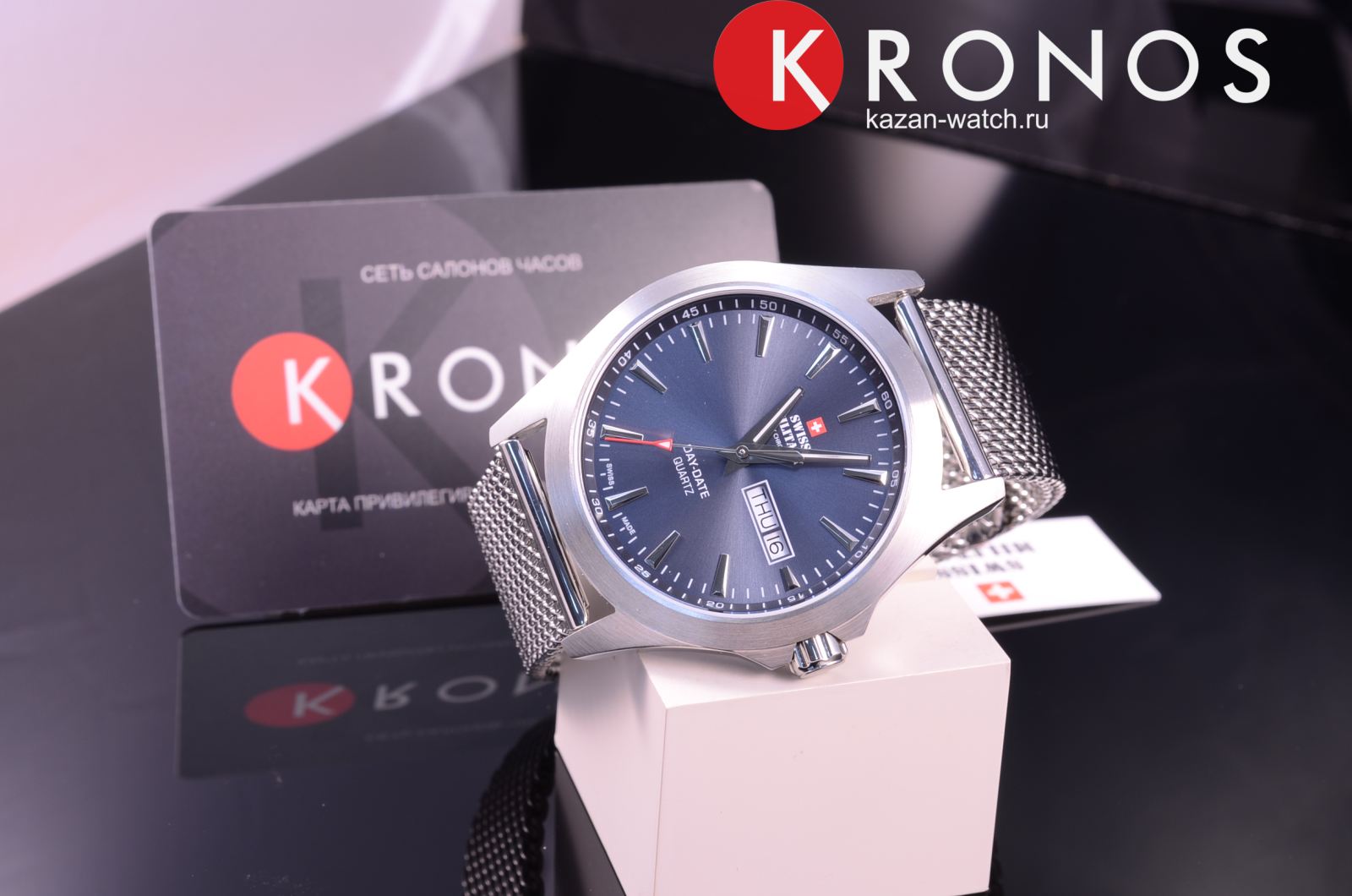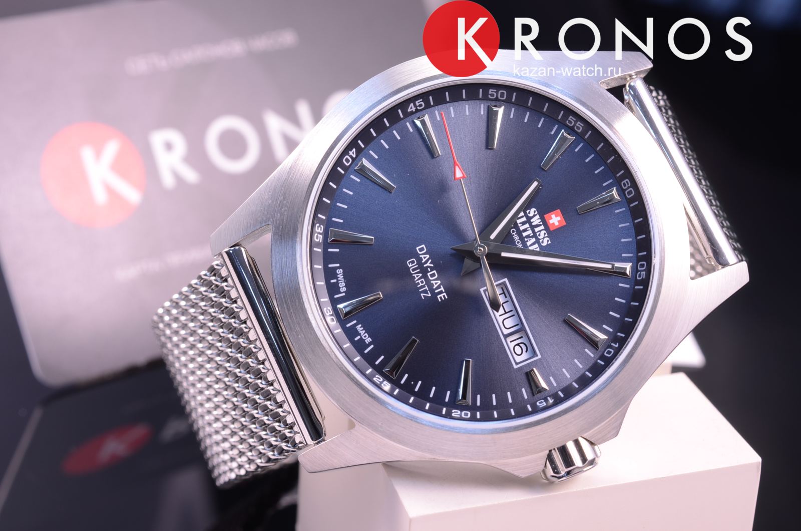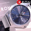 Кварцевые часы. Водостойкость WR 50. Часы, минуты, секунды, дата, день недели. Люминесцентные стрелки и метки. Корпус выполнен из нержавеющей стали. Диаметр корпуса 42 мм. Минеральное стекло с сапфировым покрытием. Заводная головка с защитой. Браслет миланского плетения, выполнен из нержавеющей стали.