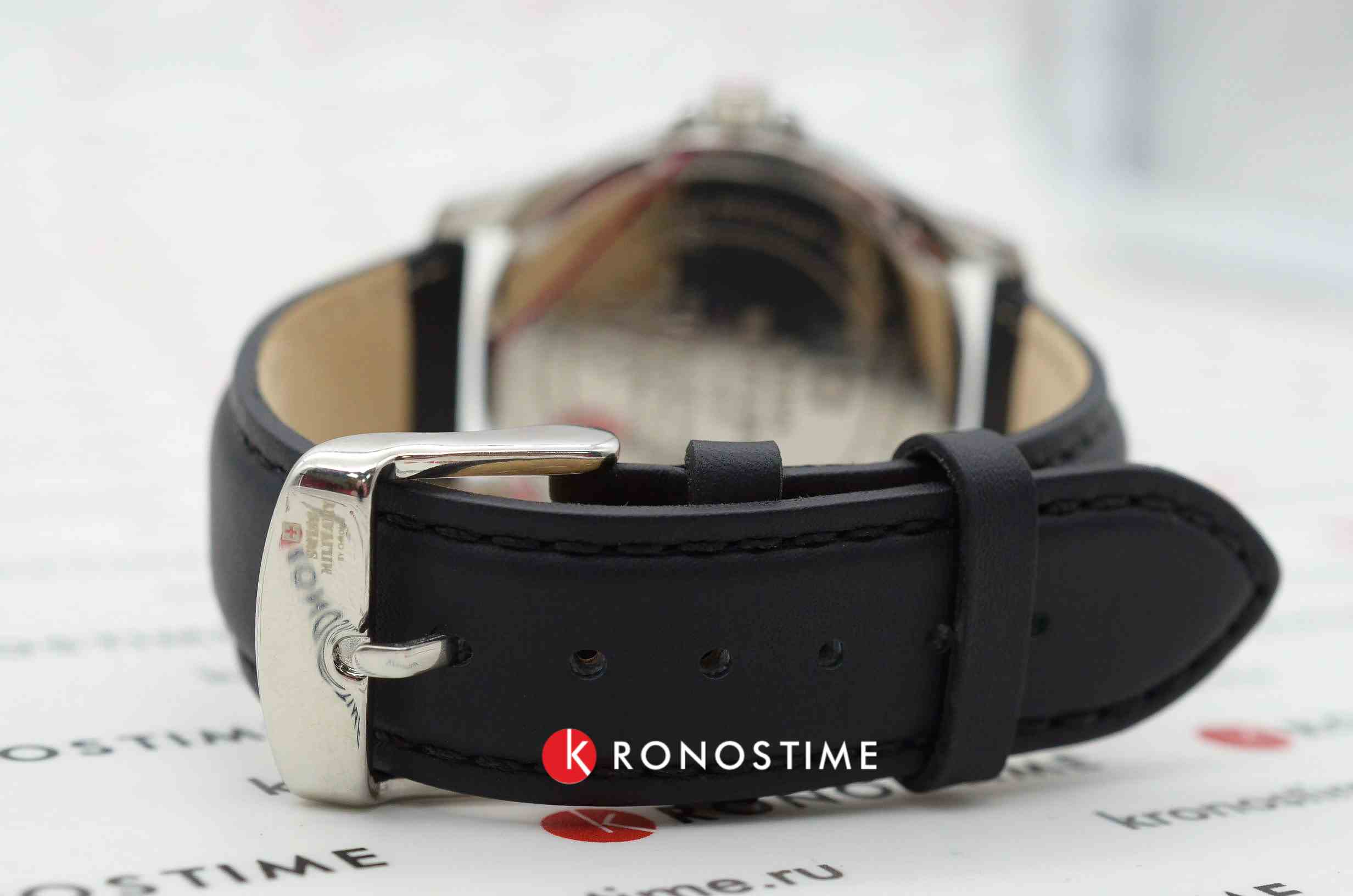 Внутри модели установлен надёжный швейцарский кварцевый механизм ETA F06.411, известный своей точностью и долговечностью. Чёрный ремешок из натуральной кожи с классической застёжкой добавляет аксессуару стильный акцент и обеспечивает комфортное ношение.
