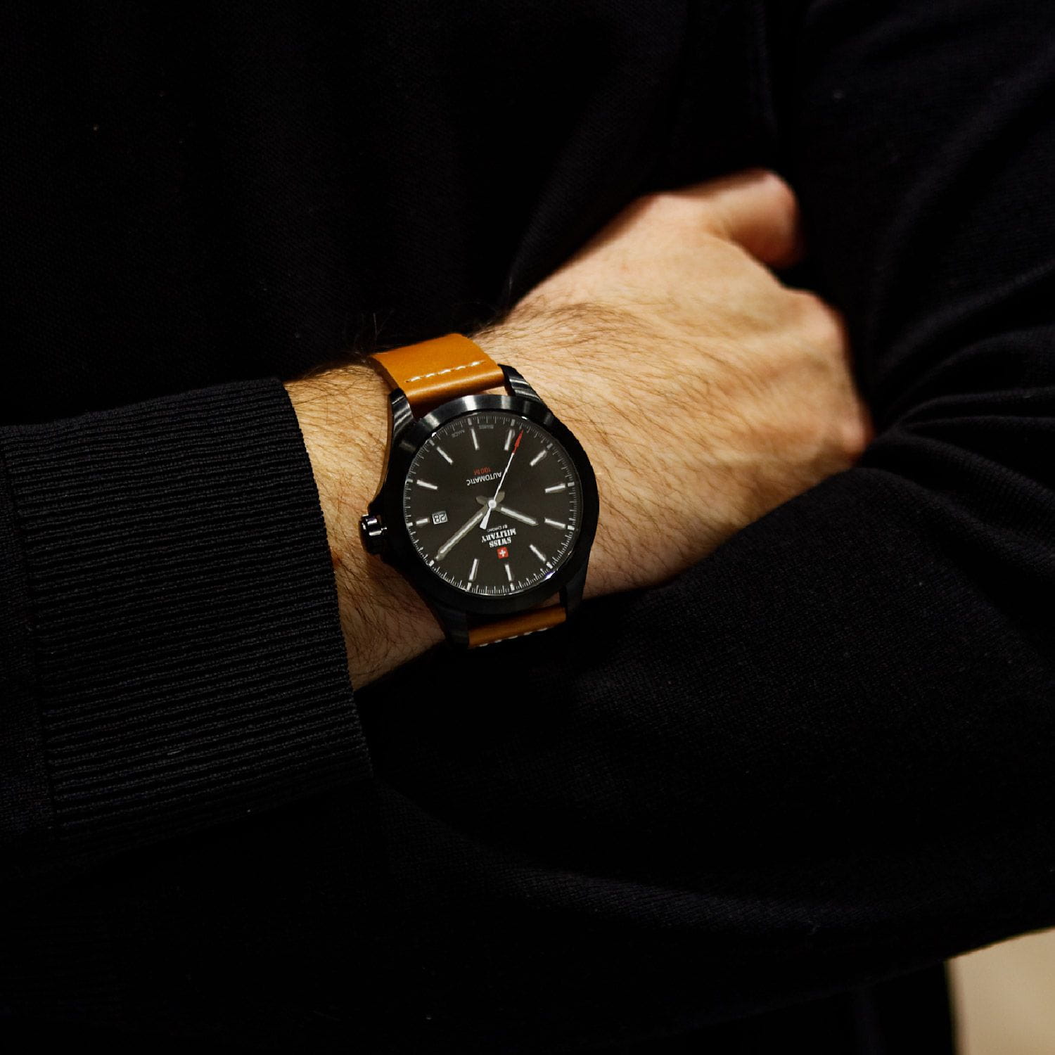 Мужские швейцарские механические часы с автоподзаводом Swiss Military by Chrono Automatic Collection SMA34077.11, механический механизм (автоматический калибр) с высокой точностью. Сапфировое стекло устойчивое к появлению царапин, обладающее высокой прозрачностью. Класс водозащиты: 100 метров, позволит плавать, нырять и заниматься другими водными видами спорта. Корпус часов изготовлен из стали, черного цвета.