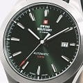 Мужские швейцарские механические часы с автоподзаводом Swiss Military by Chrono Automatic Collection SMA34077.14, механический механизм (автоматический калибр) с высокой точностью. Сапфировое стеклоСапфировое стеклоПрочный и надёжный материал из кристалла сапфира синтетического происхождения, характеризующийся особой твёрдостью и устойчивостью к царапинам и повреждениям. устойчивое к появлению царапин, обладающее высокой прозрачностью. Класс водозащиты: 100 метров, позволит плавать, нырять и заниматься другими водными видами спорта. Корпус часов изготовлен из нержавеющей стали серебристого цвета. Индикация даты на позиции трех часов. Стрелки и метки с люминесцентной подсветкойЛюминесцентное покрытиеПозволяет считывать показания времени в темноте. Производители наносят на стрелки, часовые индексы, безель или поверхность циферблата светонакопительный состав, дающий холодное свечение.. Заводная головка с защитой. Кожаный ремешок зеленого цвета.