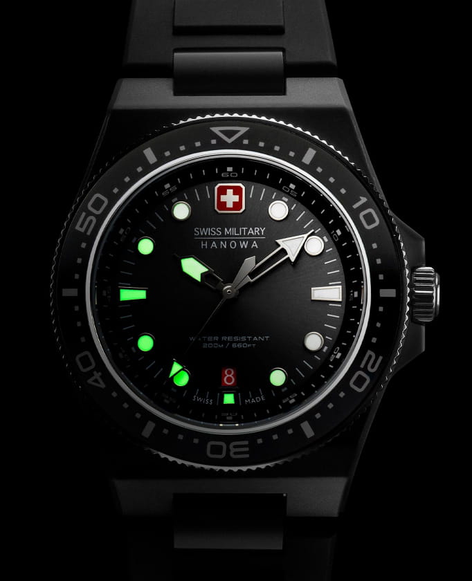 Мужские швейцарские часы Swiss Military Hanowa Ocean Pioneer SMWGN0001182, кварцевый механизм с высокой точностью. Сапфировое стеклоСапфировое стеклоПрочный и надёжный материал из кристалла сапфира синтетического происхождения, характеризующийся особой твёрдостью и устойчивостью к царапинам и повреждениям. устойчивое к появлению царапин, обладающее высокой прозрачностью. Корпус часов изготовлен из переработанного океанического пластика. БезельБезельВнешний ободок, закрепляющий стекло. В спортивных часах так называется поворотное кольцо с делениями на циферблате, выполняет роль таймера – замеряет отрезки времени на шкале. Неподвижный безель – элемент декора. Однонаправленно вращающийся безель на дайверских часах позволяет фиксировать моменты погружения и выныривания на поверхность. из нержавеющей стали с PVD-покрытиемPVDУльтратонкое покрытие наносится в технике вакуумного напыления, сочетает в себе нитрид титана особой прочности со слоем золота или оксида хрома. Несёт в себе декоративную или защитную функцию.. Стрелки с люминесцентным покрытиемЛюминесцентное покрытиеПозволяет считывать показания времени в темноте. Производители наносят на стрелки, часовые индексы, безель или поверхность циферблата светонакопительный состав, дающий холодное свечение.. Окошко даты в положении 6 часов. Класс водозащиты: 200 метров, позволит плавать, нырять и заниматься другими водными видами спорта. Силиконовый ремешок на стандартной застежке.