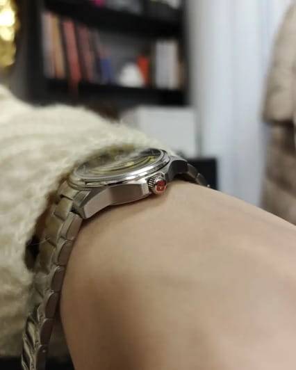 Элегантные часы Swiss Military Hanowa Commander Lady SMWLG0002901 станут идеальным аксессуаром для современных женщин. Эти часы объединяют в себе стиль и функциональность, предлагая изысканный дизайн и надежность. Корпус часов изготовлен из нержавеющей стали, что обеспечивает их долговечность и устойчивость к внешним воздействиям. Диаметр корпуса составляет 32 мм, что делает их утонченными и удобными для повседневного ношения. Браслет с раскладной застёжкойРаскладная застёжкаТакой тип застёжки используется только на браслетах из металла. Она никогда не раскрывается полностью, происходит разделение на 2 и более частей. Раскладывающая застёжка снизит вероятность потери часов к минимуму. также выполнен из нержавеющей стали, придавая часам целостный и гармоничный вид. Часы оснащены кварцевым механизмом, который гарантирует точность и надежность хода. Водозащита на уровне 10 атмосфер позволит не беспокоиться о сохранности часов во время дождя или при случайном контакте с водой. Черный циферблат украшен серебристыми арабскими цифрами, создавая стильный контраст и обеспечивая удобочитаемость, а стрелки имеют люминесцентное покрытиеЛюминесцентное покрытиеПозволяет считывать показания времени в темноте. Производители наносят на стрелки, часовые индексы, безель или поверхность циферблата светонакопительный состав, дающий холодное свечение., которое обеспечивает видимость в темноте после кратковременной зарядки на свету. Сапфировое стеклоСапфировое стеклоПрочный и надёжный материал из кристалла сапфира синтетического происхождения, характеризующийся особой твёрдостью и устойчивостью к царапинам и повреждениям. защищает циферблат от царапин и повреждений, сохраняя безупречный внешний вид часов на протяжении долгого времени. Внутри установлен швейцарский кварцевый механизм Ronda 505, обеспечивающий высокую точность хода.