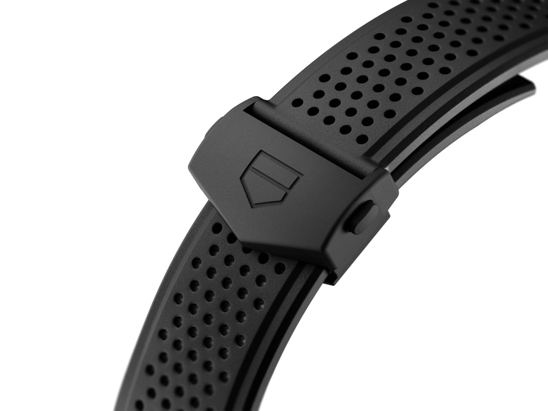Модель TAG Heuer Carrera Heuer 02 Tourbillon в черных тонах, в которой применены материалы, характерные для высокотехнологичных спортивных часов: титан с черным PVD-покрытием, из которого изготовлен 45-миллиметровый корпус, и углеродное волокно, использованное для неподвижного безеля с тахиметрической шкалой и эмблематических креплений ремешка. Часовой механизм обладает впечатляющим 80-часовым запасом хода. TAG Heuer Carrera CAR5A8W.FT6071, механический механизм (автоматический калибр) с высокой точностью. Сапфировое стекло устойчивое к появлению царапин, обладающее высокой прозрачностью. Класс водозащиты: 100 метров, позволит плавать, нырять и заниматься другими водными видами спорта. Корпус часов изготовлен из титана, цвета.