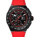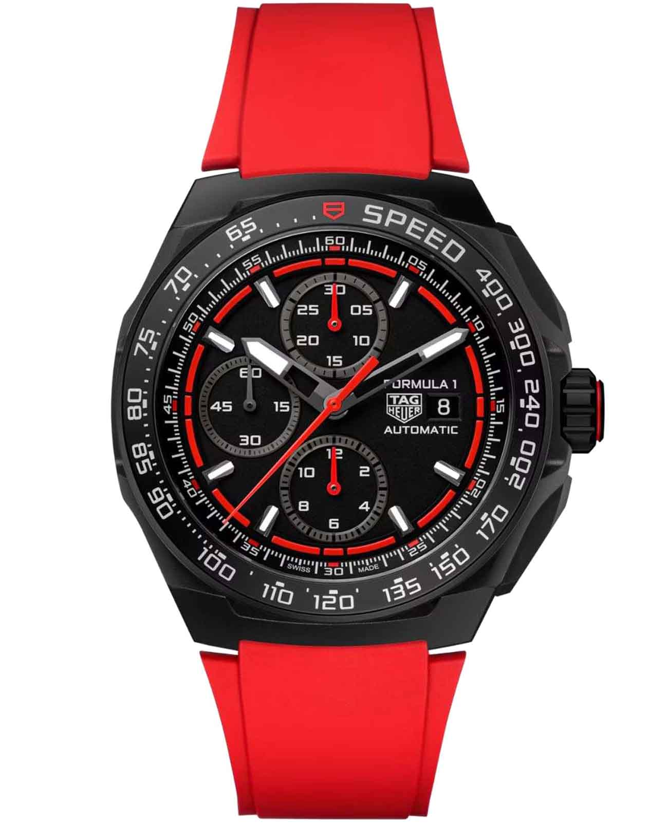 Мужские механические часы TAG Heuer Formula 1 Chronograph CBZ2085.FT8093 — это стильное сочетание элегантности и современного дизайна. Корпус из титана 2-го класса диаметром 44 мм c DLC-покрытиемDLC-покрытиеDiamond like carbon - одно из лучших видов покрытия, представляющее собой углерод с алмазными свойствами. На поверхность материала наносятся распавшиеся молекулы углерода, превращающиеся в плёнку из алмазоподобных связей, которая перенимает твёрдость алмаза. идеально сбалансирован и элегантен. Сапфировое стеклоСапфировое стеклоПрочный и надёжный материал из кристалла сапфира синтетического происхождения, характеризующийся особой твёрдостью и устойчивостью к царапинам и повреждениям. с антибликовым покрытием защищает циферблат от царапин и обеспечивает отличную читаемость при любом освещении. Резиновый ремешок на стандартной застежке идеально дополняют дизайн часов, обеспечивая комфортное ношение. Стрелки и метки на циферблате имеют люминесцентное покрытиеЛюминесцентное покрытиеПозволяет считывать показания времени в темноте. Производители наносят на стрелки, часовые индексы, безель или поверхность циферблата светонакопительный состав, дающий холодное свечение. позволяющее легко определять время даже в темноте. БезельБезельВнешний ободок, закрепляющий стекло. В спортивных часах так называется поворотное кольцо с делениями на циферблате, выполняет роль таймера – замеряет отрезки времени на шкале. Неподвижный безель – элемент декора. Однонаправленно вращающийся безель на дайверских часах позволяет фиксировать моменты погружения и выныривания на поверхность. тахиметраТахиметрРазмеченная шкала, располагается на ободке или безеле часов. Тахиметр позволяет рассчитать скорость на определённом участке пути, расстояние измеряется в километрах или милях. подчёркивает спортивное наследие часов. Часы обладают впечатляющей водонепроницаемостью до 20 бар (200 метров), что делает их идеальными для плавания, ныряния и погружений с аквалангом. Автоматический хронографХронографФункция позволяет измерять отрезки времени с особой точностью: часы, минуты, секунды. Верным признаком хронографа является наличие на циферблате 3 дополнительных окошек-счётчиков. обеспечивает точное измерение времени на каждом круге. Запас хода до 42 часов. Прочная конструкция часов и высокопроизводительный механизм делают их идеальным спутником для любителей гонок.