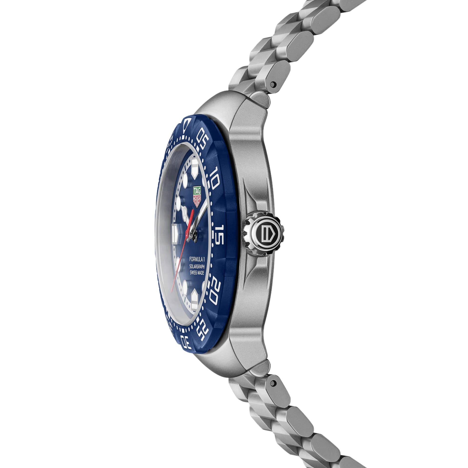 Женские кварцевые часы TAG Heuer Formula 1 Solargraph WBY1112.BA0042 — это стильное сочетание элегантности и современного дизайна. Эти часы с калибром TH50-00, в котором реализована технология Solargraph, адресованы тем, кто ценит авангардные инновации как в форме, так и в функциях. Корпус из нержавеющей стали с диаметром 38 мм идеально сбалансирован и элегантен. Сапфировое стеклоСапфировое стеклоПрочный и надёжный материал из кристалла сапфира синтетического происхождения, характеризующийся особой твёрдостью и устойчивостью к царапинам и повреждениям. с антибликовым покрытием защищает циферблат от царапин и обеспечивает отличную читаемость при любом освещении. Стальной браслет на раскладной застёжкеРаскладная застёжкаТакой тип застёжки используется только на браслетах из металла. Она никогда не раскрывается полностью, происходит разделение на 2 и более частей. Раскладывающая застёжка снизит вероятность потери часов к минимуму. идеально дополняют дизайн часов, обеспечивая комфортное ношение. Стрелки и метки на циферблате имеют люминесцентное покрытиеЛюминесцентное покрытиеПозволяет считывать показания времени в темноте. Производители наносят на стрелки, часовые индексы, безель или поверхность циферблата светонакопительный состав, дающий холодное свечение. позволяющее легко определять время даже в темноте. БезельБезельВнешний ободок, закрепляющий стекло. В спортивных часах так называется поворотное кольцо с делениями на циферблате, выполняет роль таймера – замеряет отрезки времени на шкале. Неподвижный безель – элемент декора. Однонаправленно вращающийся безель на дайверских часах позволяет фиксировать моменты погружения и выныривания на поверхность. из запатентованной биополимерной смолы TH-Polylight, которая делает часы лёгкими и прочными. Часы обладают впечатляющей водонепроницаемостью до 10 бар (100 метров), что делает их идеальными для плавания, ныряния и погружений с аквалангом.