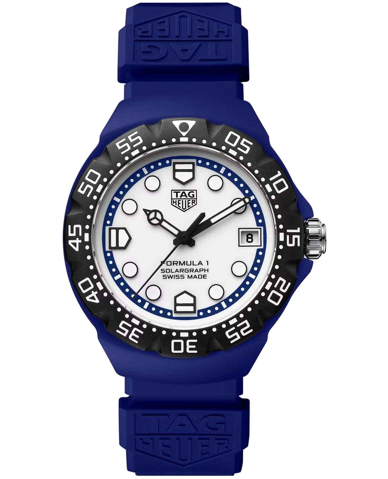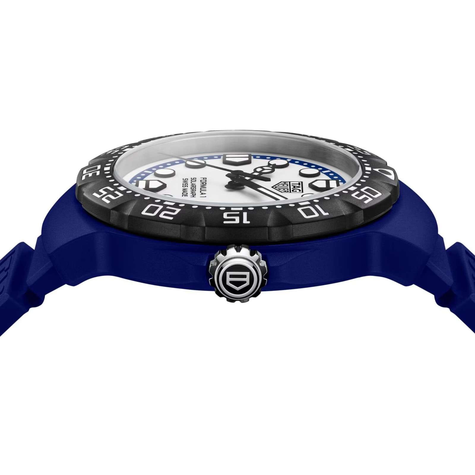 Мужские кварцевые часы TAG Heuer Formula 1 Solargraph WBY1162.FT8105 — это стильное сочетание элегантности и современного дизайна. Эти часы из ограниченной серии с калибром TH50-00, в котором реализована технология Solargraph, адресованы тем, кто ценит авангардные инновации как в форме, так и в функциях. Корпус диаметром 38 мм и безельБезельВнешний ободок, закрепляющий стекло. В спортивных часах так называется поворотное кольцо с делениями на циферблате, выполняет роль таймера – замеряет отрезки времени на шкале. Неподвижный безель – элемент декора. Однонаправленно вращающийся безель на дайверских часах позволяет фиксировать моменты погружения и выныривания на поверхность. из запатентованной биополимерной смолы TH-Polylight, которая делает часы лёгкими и прочными. Сапфировое стеклоСапфировое стеклоПрочный и надёжный материал из кристалла сапфира синтетического происхождения, характеризующийся особой твёрдостью и устойчивостью к царапинам и повреждениям. с антибликовым покрытием защищает циферблат от царапин и обеспечивает отличную читаемость при любом освещении. Резиновый ремешок на стандартной застежке с DLC-покрытиемDLC-покрытиеDiamond like carbon - одно из лучших видов покрытия, представляющее собой углерод с алмазными свойствами. На поверхность материала наносятся распавшиеся молекулы углерода, превращающиеся в плёнку из алмазоподобных связей, которая перенимает твёрдость алмаза. идеально дополняют дизайн часов, обеспечивая комфортное ношение. Стрелки и метки на циферблате имеют люминесцентное покрытиеЛюминесцентное покрытиеПозволяет считывать показания времени в темноте. Производители наносят на стрелки, часовые индексы, безель или поверхность циферблата светонакопительный состав, дающий холодное свечение. позволяющее легко определять время даже в темноте. Часы обладают впечатляющей водонепроницаемостью до 10 бар (100 метров), что делает их идеальными для плавания, ныряния и погружений с аквалангом.