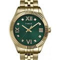 Часы Timex TW2V45500 из коллекции Waterbury Legacy — это элегантный женский аксессуар, который сочетает классический дизайн и современные технологии. Корпус диаметром 34 мм и браслет выполнены из нержавеющей стали с золотистым PVD-покрытиемPVDУльтратонкое покрытие наносится в технике вакуумного напыления, сочетает в себе нитрид титана особой прочности со слоем золота или оксида хрома. Несёт в себе декоративную или защитную функцию., что придаёт часам изысканный вид. Зелёный циферблат с римскими цифрами и стрелками защищён минеральным стекломМинеральное стеклоМинеральное стекло представляет собой искусственно выращенный минерал кварца. Такое стекло отличается особой устойчивостью к повреждениям и царапинам. Уступает по некоторым качествам сапфировому стеклу., устойчивым к царапинам, а так же украшен кристаллами.