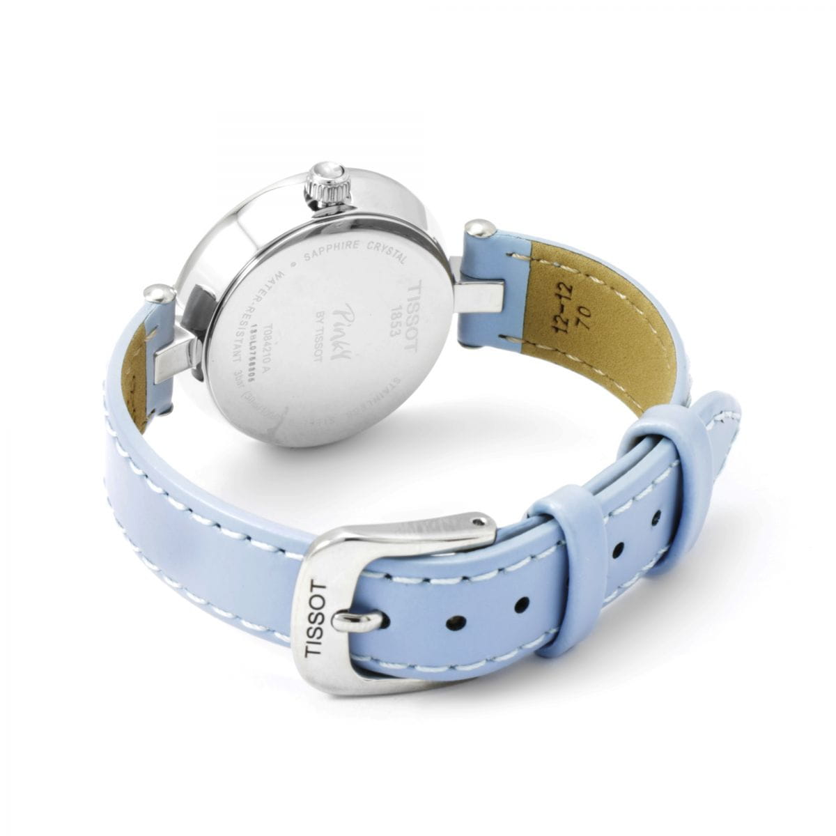 TISSOT T0842101601702 T-Trend Pinky By Tissot Quartz - женские кварцевые наручные часы Корпус этих часов небольшого размера (2795 мм) и выполнен из нержавеющей стали L316 металлического цвета Модель TISSOT T0842101601702 T-Trend Pinky By Tissot Quartz имеет устойчивое к царапинам сапфировое стекло, ремешок из натуральной кожи голубого цвета, белый циферблат Калибр механизма: ETA F03111 Класс водозащиты: 30 м / 3 АТМ (защита от брызг и случайных капель) Дополнительные функции и особенности: отображение числа Полная заводская комплектация TISSOT: оригинальные часы, фирменная коробка, инструкция, сервисная книжка, роман о часовой фабрике, миникаталог, замшевый фирменный чехол черного цвета для хранения и/или переноски часов, кассовый и товарный чеки Международная гарантия 2 года Производство и сборка: Швейцария