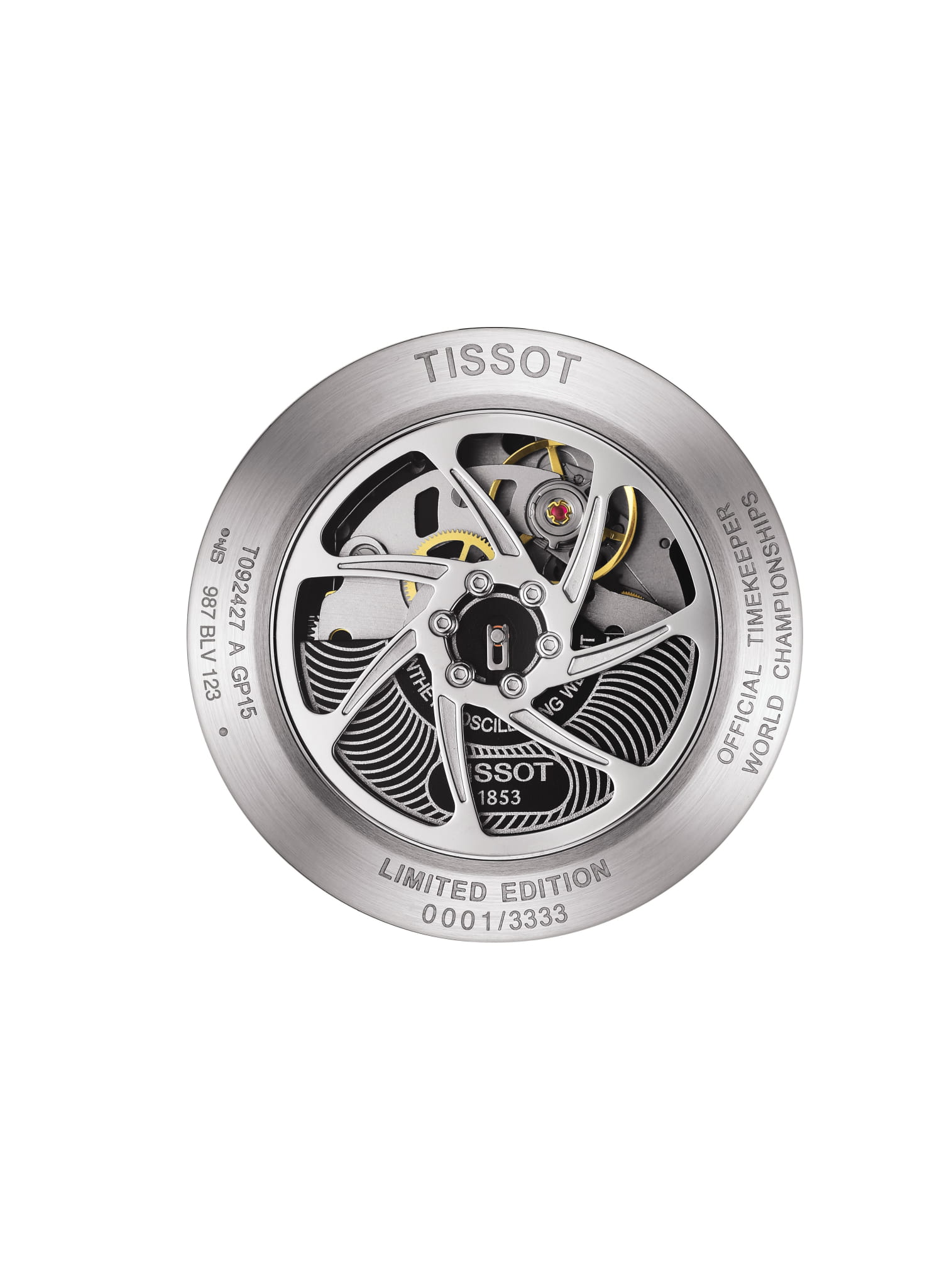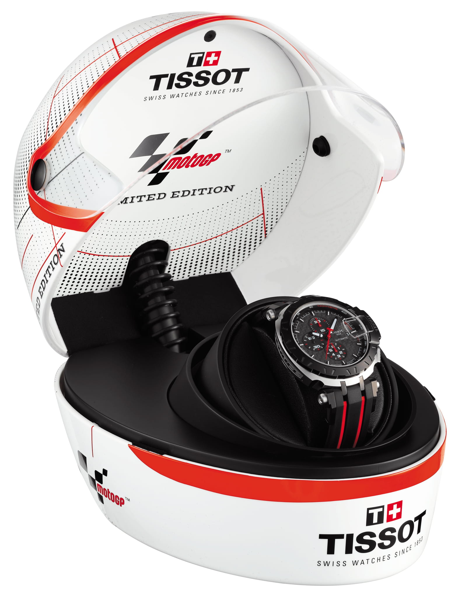 TISSOT T0924272706100 - мужские механические наручные часы Корпус этих часов крупного размера (45 мм) и выполнен из нержавеющей стали L316 Модель T0924272706100 имеет устойчивое к царапинам сапфировое стекло, ремешок из натурального каучука черного цвета, черный циферблат Калибр механизма: ETA G10211 Класс водозащиты: 100 м / 10 АТМ (разрешается плавание и ныряние без акваланга) Дополнительные функции и особенности: отображение числа, хронограф (секундомер) Ограниченная серия MotoGP Limited Edition Полная заводская комплектация TISSOT: оригинальные часы, фирменная коробка, инструкция, сервисная книжка, роман о часовой фабрике, миникаталог, замшевый фирменный чехол черного цвета для хранения и/или переноски часов, кассовый и товарный чеки Международная гарантия 2 года Производство и сборка: Швейцария