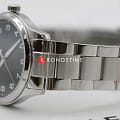 Лаконичный чёрный циферблат с арабскими цифрами привлекательно смотрится на запястье, отлично сочетаясь с серебристыми переливами корпуса и браслета из нержавеющей стали 316L. Часы оснащены кварцевым механизмом ETA F06.115 с высокой точностью хода. Сапфировое стекло устойчиво к образованию царапин. Яркая люминесцентная подсветкаЛюминесцентное покрытиеПозволяет считывать показания времени в темноте. Производители наносят на стрелки, часовые индексы, безель или поверхность циферблата светонакопительный состав, дающий холодное свечение.. Функция EOLEOLПредставляет собой систему, уведомляющую владельца часов о необходимости замены элемента питания. За 2 недели до полного разряда батарейки секундная стрелка перестаёт ходить чётко и начинает перепрыгивать на 3-4 деления., апертура даты. Габариты: 42 x 42 x 8,9 мм.