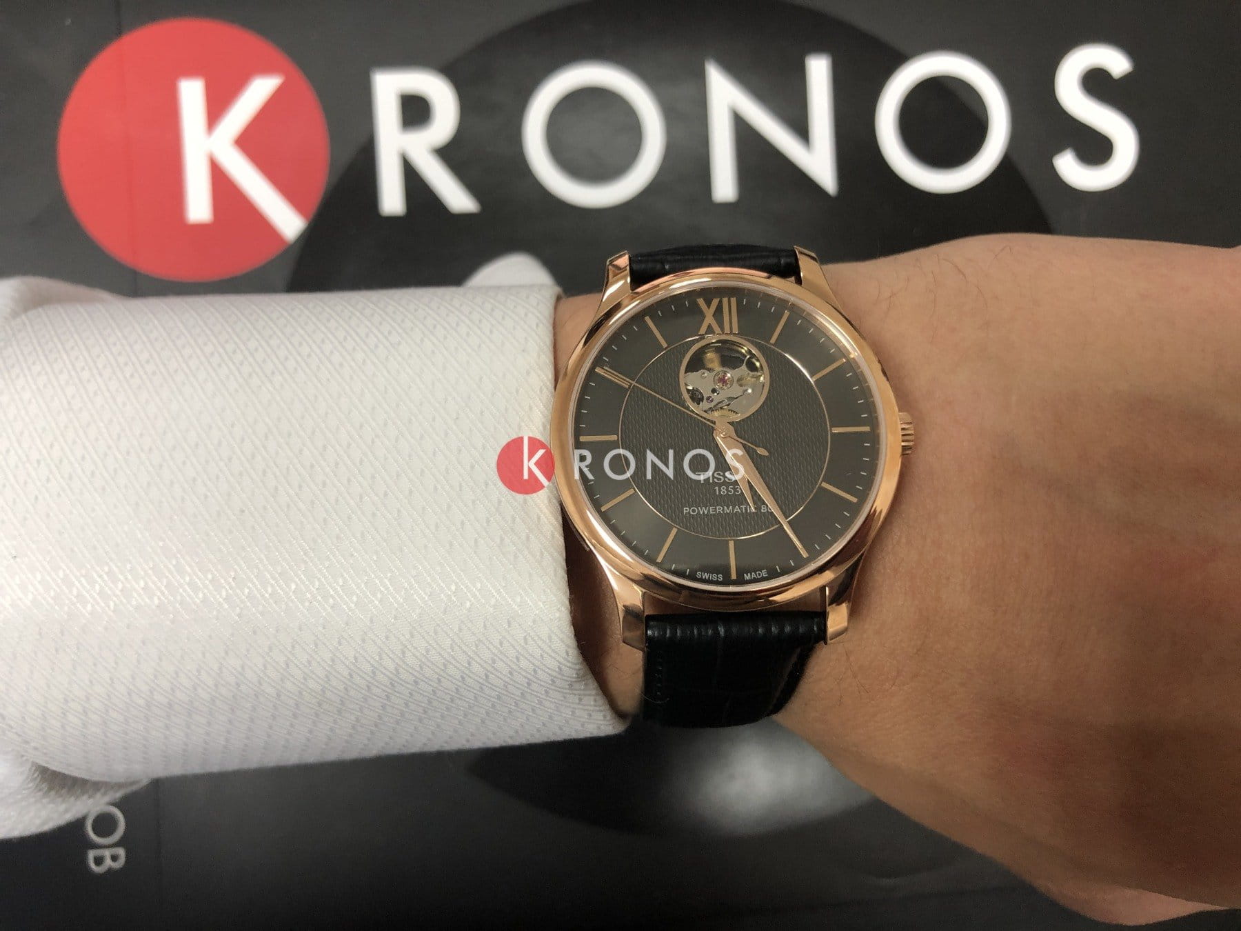 Швейцарские мужские механические часы Tissot Tradition Powermatic 80 Open Heart T063.907.36.068.00