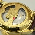 Наручные часы станут идеальным дополнением для делового или повседневного образа, дизайн продуман до мелочей. Светлый циферблат с характерным узором дополнен римскими цифрами в стиле ретро, в качестве главного украшения используется 8 бриллиантов цвета Top Wesselton в 0,04 карат. Стальной корпус имеет золотистое PVD-покрытиеPVDУльтратонкое покрытие наносится в технике вакуумного напыления, сочетает в себе нитрид титана особой прочности со слоем золота или оксида хрома. Несёт в себе декоративную или защитную функцию.. Автоматический калибр ETA Powermatic 80Powermatic 80Эксклюзивный калибр от швейцарской компании ETA с увеличенным запасом хода до 80 часов за счёт удлинённой заводной пружины. Характеризуется улучшенной системой спуска со сниженным трением. с 80-часовым запасом хода. Стекло из сапфира. Коричневый ремешок из натуральной кожи. Габариты: 39,3 x 39,3 x 9,8 мм.