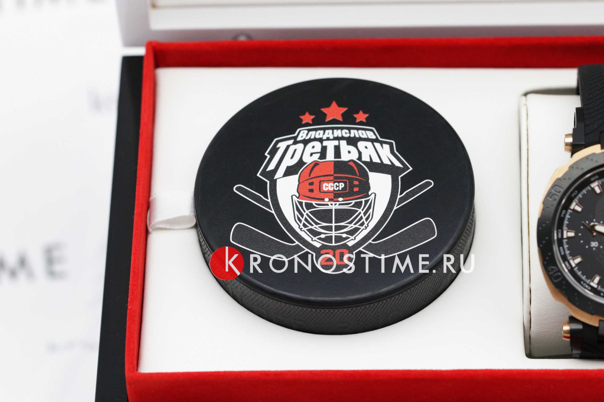 Мужские лимитированные швейцарские механические часы (20 экземпляров на Россию) из коллекции T-Race выпущены в честь легендарного хоккеиста Владислава Третьяка. (Владислав Третьяк — единственный хоккеист, которому удалось три раза получить награду лучшему хоккеисту Европы — «Золотую клюшку». Третьяк завоевал в общей сложности 90 медалей, в числе которых 3 золотые олимпийские, 10 золотых медалей чемпиона мира, 12 золотых — чемпиона Европы.) Часы с автоподзаводом, они оснащены популярным калибром ETA C01.211 с запасом хода 45 часов. Стальной корпус с чёрным и розово-золотистым PVDPVDУльтратонкое покрытие наносится в технике вакуумного напыления, сочетает в себе нитрид титана особой прочности со слоем золота или оксида хрома. Несёт в себе декоративную или защитную функцию.-покрытием. Сапфировое стеклоСапфировое стеклоПрочный и надёжный материал из кристалла сапфира синтетического происхождения, характеризующийся особой твёрдостью и устойчивостью к царапинам и повреждениям.. Удобный силиконовый браслет с раскладной застёжкойРаскладная застёжкаТакой тип застёжки используется только на браслетах из металла. Она никогда не раскрывается полностью, происходит разделение на 2 и более частей. Раскладывающая застёжка снизит вероятность потери часов к минимуму.. Люминесцентное покрытиеЛюминесцентное покрытиеПозволяет считывать показания времени в темноте. Производители наносят на стрелки, часовые индексы, безель или поверхность циферблата светонакопительный состав, дающий холодное свечение.. Водостойкость до 10 бар. СекундомерСекундомерСекундоме́р — прибор, способный измерять интервалы времени с точностью до долей секунды., тахиметрТахиметрРазмеченная шкала, располагается на ободке или безеле часов. Тахиметр позволяет рассчитать скорость на определённом участке пути, расстояние измеряется в километрах или милях., индикация числа. Габариты: 47,25 x 45 x 16 мм. Производство и сборка: Швейцария.