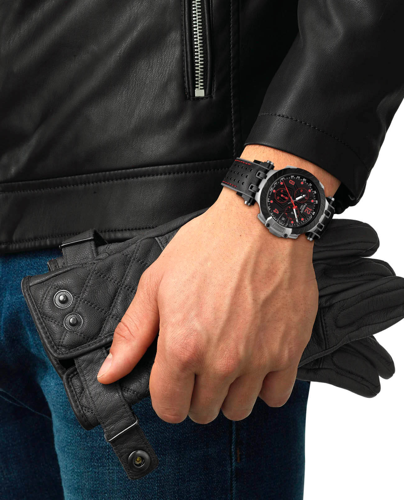 Мужские наручные часы из лимитированной коллекции T-Race Limited Edition (всего 3993 экземпляра) выпущены в честь мотогонщика Марка Маркеса - семикратного чемпиона.