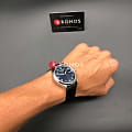 Часы сочетают в себе классический и спортивный стиль, при создании модели дизайнеры вдохновлялись сотрудничеством бренда Tissot с миром спортивных чемпионатов. Массивный корпус с ярко-синим циферблатом красиво смотрится на мужском запястье. Кварцевый высокоточный механизм ETA F06.115. Ремешок из натуральной кожи с тиснением. Сапфировое стекло. Индикатор разряда батареи. Габариты: 42 x 42 x 8,9 мм.
