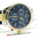 Мужской хронографХронографФункция позволяет измерять отрезки времени с особой точностью: часы, минуты, секунды. Верным признаком хронографа является наличие на циферблате 3 дополнительных окошек-счётчиков. не только позволяет измерять временные промежутки с особой точностью, но и выполняет роль элегантного аксессуара. Ярко-синий циферблат сразу бросается в глаза, три дополнительных счётчика привносят в общий облик модели спортивный стиль. Наручные часы изготовлены из нержавеющей стали с PVD-покрытиемPVDУльтратонкое покрытие наносится в технике вакуумного напыления, сочетает в себе нитрид титана особой прочности со слоем золота или оксида хрома. Несёт в себе декоративную или защитную функцию., тяжесть материала приятно ощущается на запястье и не доставляет неудобств. Кварцевый механизм ETA G10.212. Люминесцентная подсветка. Высокие показатели водозащиты. Габариты: 45 x 45 x 11 мм. Производство и сборка: Швейцария.