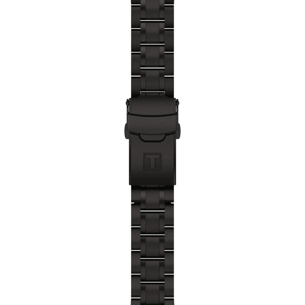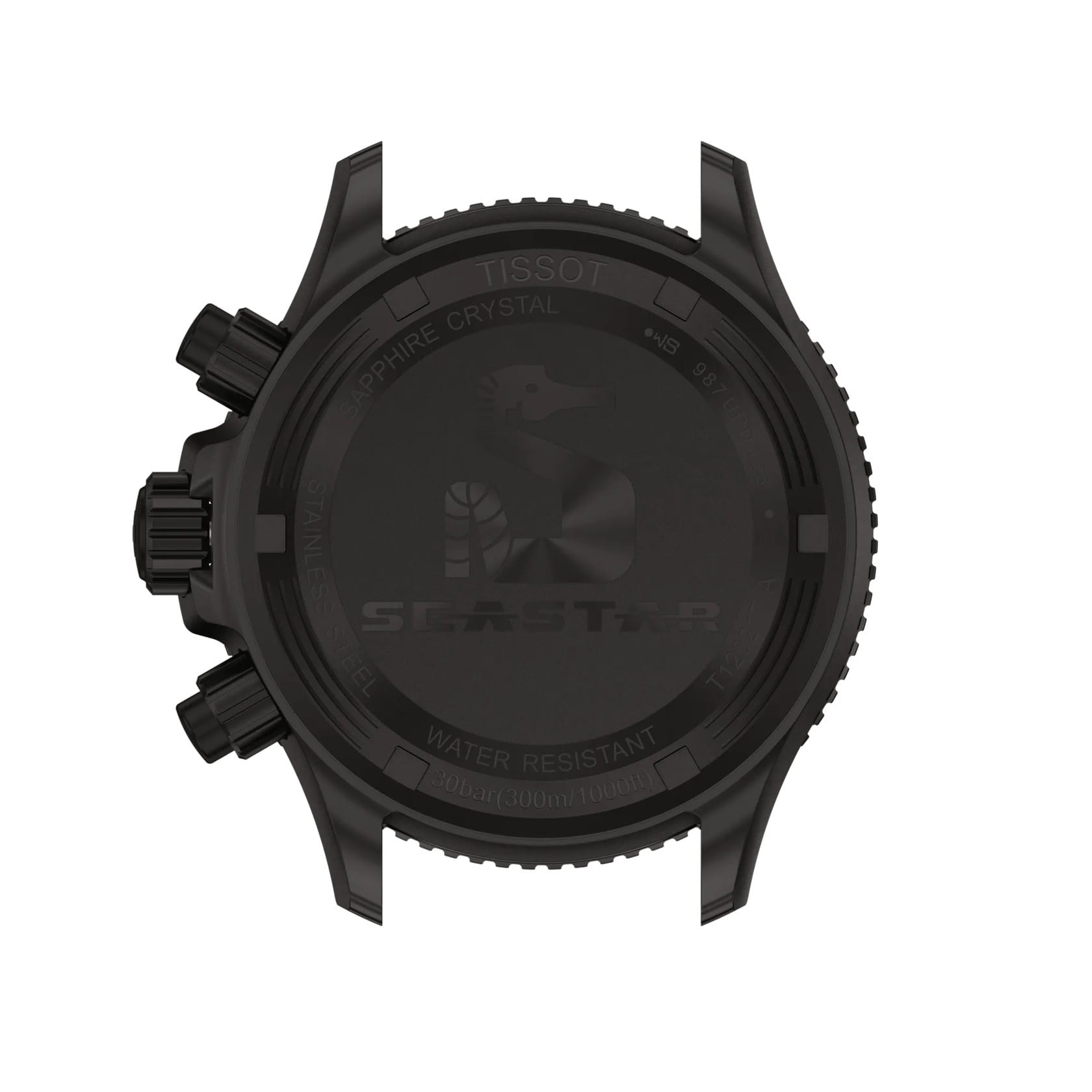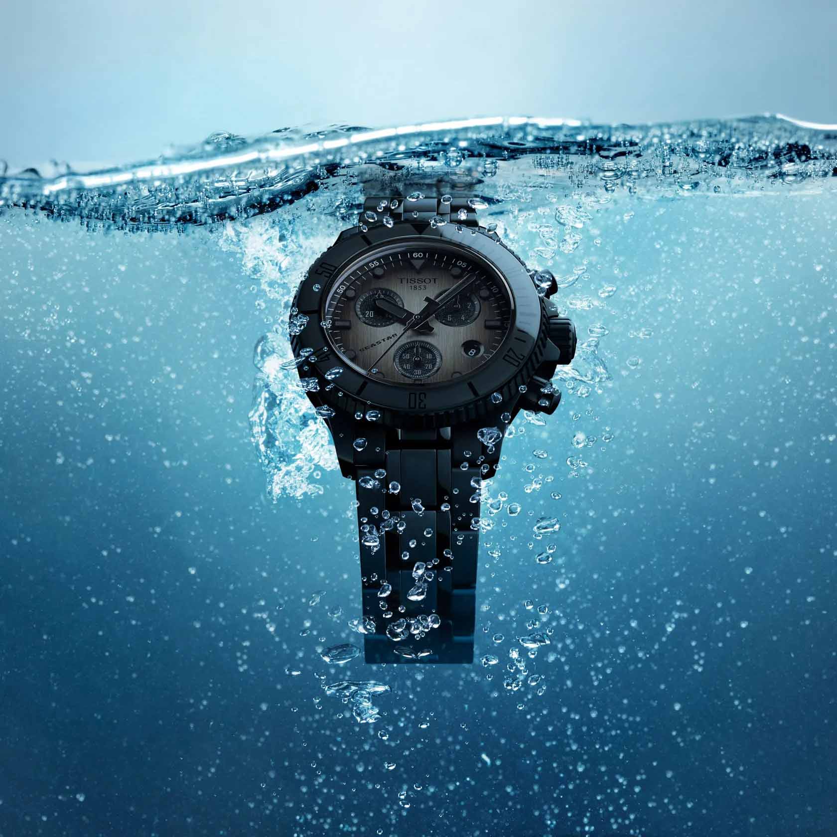 Мужские кварцевые часы Tissot Seastar 38 мм T1202173306100 — это современная интерпретация классического дайвинг-хронографа, сочетающая в себе мощь наследия и передовые технологии. Модель выполнена в круглой форме из нержавеющей стали 316L с PVD-покрытиемPVDУльтратонкое покрытие наносится в технике вакуумного напыления, сочетает в себе нитрид титана особой прочности со слоем золота или оксида хрома. Несёт в себе декоративную или защитную функцию. чёрного цвета, что придаёт ей благородный внешний вид и устойчивость к царапинам. Циферблат градиентного серо-чёрного цвета дополнен индексами, а его поверхность защищена сапфировым стекломСапфировое стеклоПрочный и надёжный материал из кристалла сапфира синтетического происхождения, характеризующийся особой твёрдостью и устойчивостью к царапинам и повреждениям. с двусторонним антибликовым покрытиемАнтибликовое покрытиеСлой оксида металла в 0,13-0,3 микрон, благодаря которому стекло часов не бликует и не отражает свет. Антибликовое покрытие уменьшает отражение света в 10 раз, обеспечивая отличную читаемость показателей циферблата., устойчивым к повреждениям. Стрелки и метки имеют люминесцентное покрытиеЛюминесцентное покрытиеПозволяет считывать показания времени в темноте. Производители наносят на стрелки, часовые индексы, безель или поверхность циферблата светонакопительный состав, дающий холодное свечение. Super-LumiNova®, обеспечивающее отличную читаемость даже в условиях слабого освещения. Часы оснащены швейцарским кварцевым хронографическим механизмом с функцией EOL (индикатор окончания срока службы батарейки), который обеспечивает точную работу и минимальное обслуживание. Браслет из нержавеющей стали с покрытием чёрного цвета оснащён раскладной застёжкойРаскладная застёжкаТакой тип застёжки используется только на браслетах из металла. Она никогда не раскрывается полностью, происходит разделение на 2 и более частей. Раскладывающая застёжка снизит вероятность потери часов к минимуму. с кнопками и защитой, обеспечивающей комфорт и надёжную фиксацию на запястье. Ремешок является быстросменным, что позволяет легко менять его по желанию. Функциональность модели включает хронограф с центральной секундной стрелкой. Водонепроницаемость позволяет использовать модель при плавании, нырянии и других водных активностях без глубокого погружения. Эти часы станут универсальным аксессуаром для тех, кто ценит сочетание стиля, функциональности и швейцарского мастерства — идеальный выбор для повседневной носки и активного образа жизни.