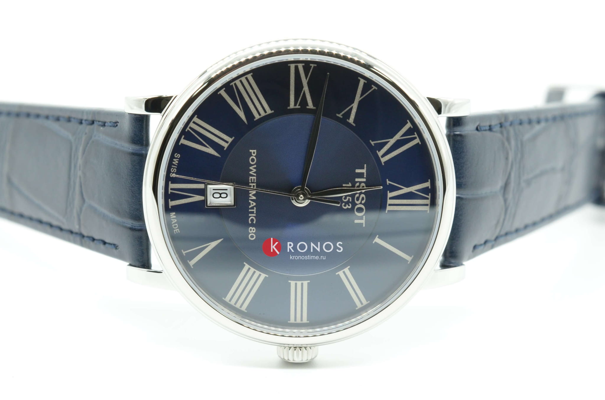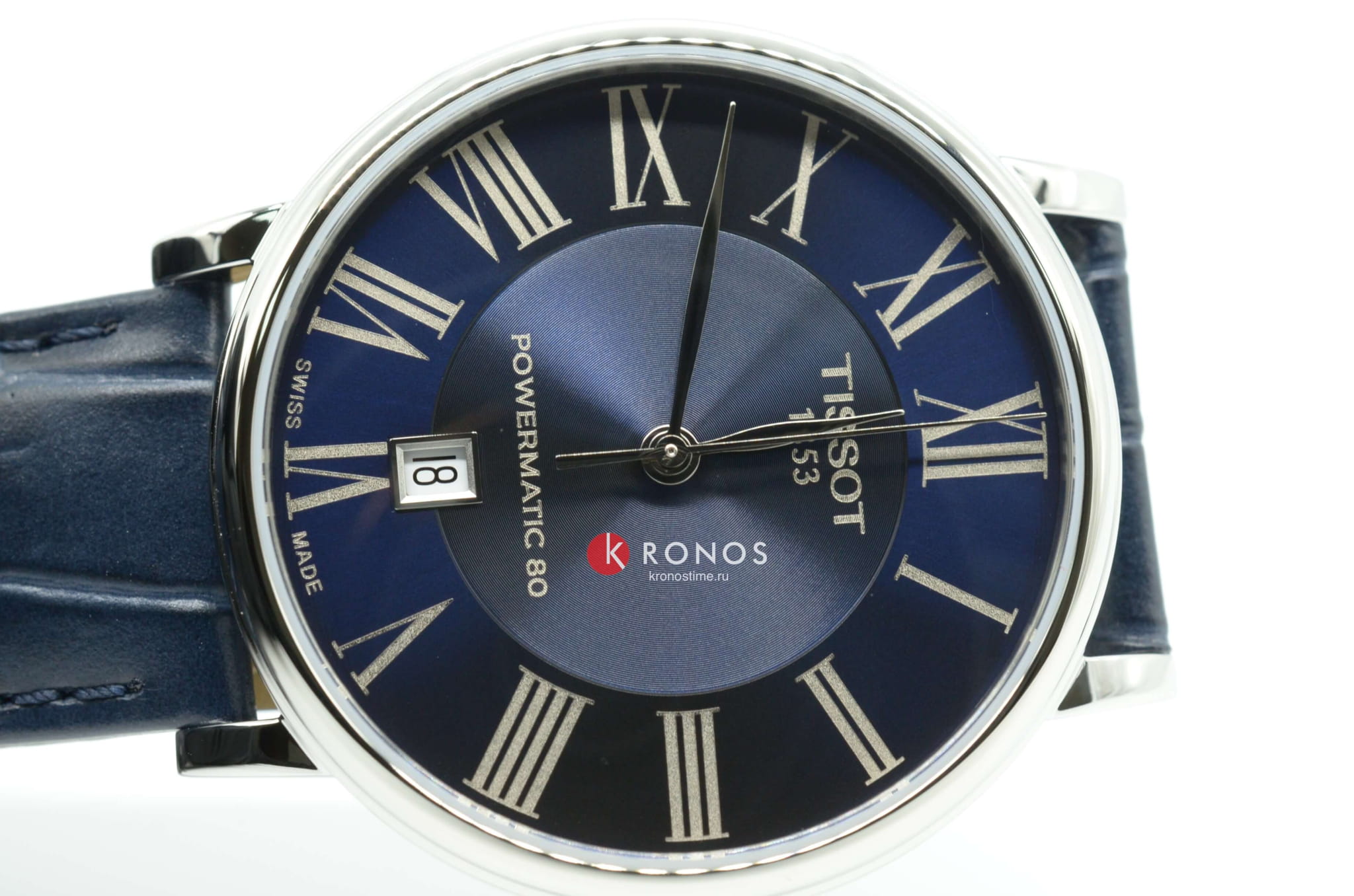 Аксессуар в синей расцветке гармонично дополнит образ на деловую встречу, повседневную прогулку, светское мероприятие. Циферблат с римскими цифрами приобретает визуальную глубину благодаря оригинальному исполнению. Наручные часы с автоматической системой завода заводятся от движений руки носителя, в основе работы находится швейцарский механизм ETA Powermatic 80Powermatic 80Эксклюзивный калибр от швейцарской компании ETA с увеличенным запасом хода до 80 часов за счёт удлинённой заводной пружины. Характеризуется улучшенной системой спуска со сниженным трением. с увеличенным 80-часовым запасом хода. Серебряный блеск корпуса из нержавеющей стали 316L гармонирует с текстурированной поверхностью ремешка из натуральной кожи. Сапфировое стекло отличается 100% устойчивостью к царапинам. На позиции 6 часов расположено окошко текущей даты. Степень водонепроницаемости – WR 50. Габариты: 40 x 40 x 10,3 мм.