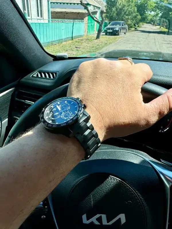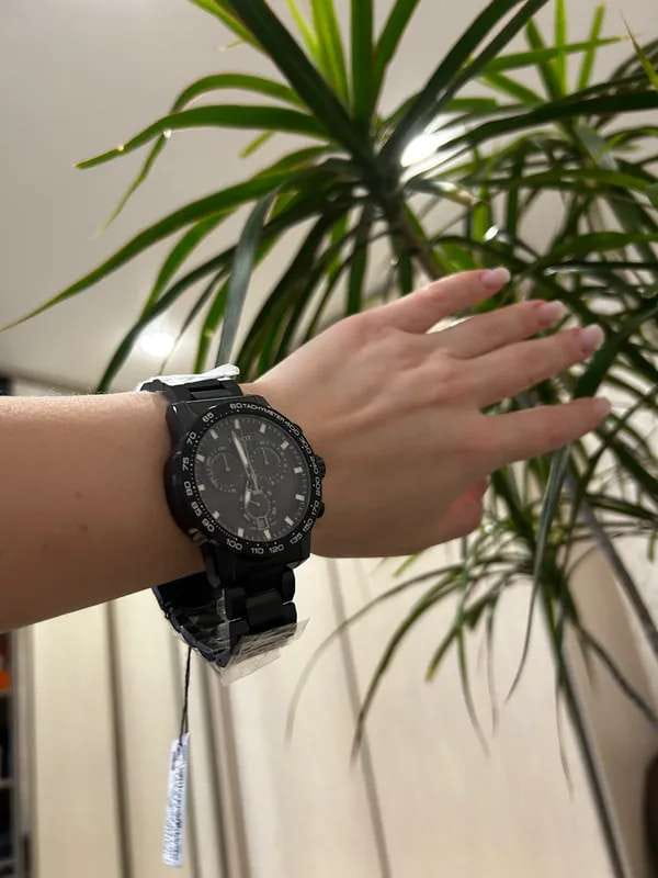 Современный хронографХронографФункция позволяет измерять отрезки времени с особой точностью: часы, минуты, секунды. Верным признаком хронографа является наличие на циферблате 3 дополнительных окошек-счётчиков. поможет подчеркнуть продуманный образ делового мужчины. Модель выполнена в чёрной-белой расцветке. Наручные часы функционируют благодаря швейцарскому кварцевому механизму ETA G10.212. Калибр отличается максимальной точностью хода. Стекло из сапфира. Водостойкость 100 метров. Надёжный корпус из антикоррозионной стали 316L с чёрным PVD-покрытиемPVDУльтратонкое покрытие наносится в технике вакуумного напыления, сочетает в себе нитрид титана особой прочности со слоем золота или оксида хрома. Несёт в себе декоративную или защитную функцию.. Люминесцентная подсветкаЛюминесцентное покрытиеПозволяет считывать показания времени в темноте. Производители наносят на стрелки, часовые индексы, безель или поверхность циферблата светонакопительный состав, дающий холодное свечение. стрелок и индексов. Секундомер, отображение даты. Диаметр корпуса: 45,5 мм.