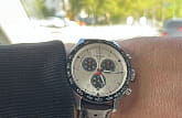 Броский аксессуар станет отличным вариантом для повседневного ношения, дополнения спортивного образа. Наручные часы дополнены перфорированным ремешком из натуральной кожи, что делает их ещё более стильными. Кварцевый механизм ETA G10.212. Керамический безельБезельВнешний ободок, закрепляющий стекло. В спортивных часах так называется поворотное кольцо с делениями на циферблате, выполняет роль таймера – замеряет отрезки времени на шкале. Неподвижный безель – элемент декора. Однонаправленно вращающийся безель на дайверских часах позволяет фиксировать моменты погружения и выныривания на поверхность.. Сапфировое стекло с антибликовым покрытием. Водонепроницаемость 100 метров. . Функционал: хронографХронографФункция позволяет измерять отрезки времени с особой точностью: часы, минуты, секунды. Верным признаком хронографа является наличие на циферблате 3 дополнительных окошек-счётчиков., секундомер, тахиметрТахиметрРазмеченная шкала, располагается на ободке или безеле часов. Тахиметр позволяет рассчитать скорость на определённом участке пути, расстояние измеряется в километрах или милях., календарь. Габариты: 45 x 45 x 12,1 мм.