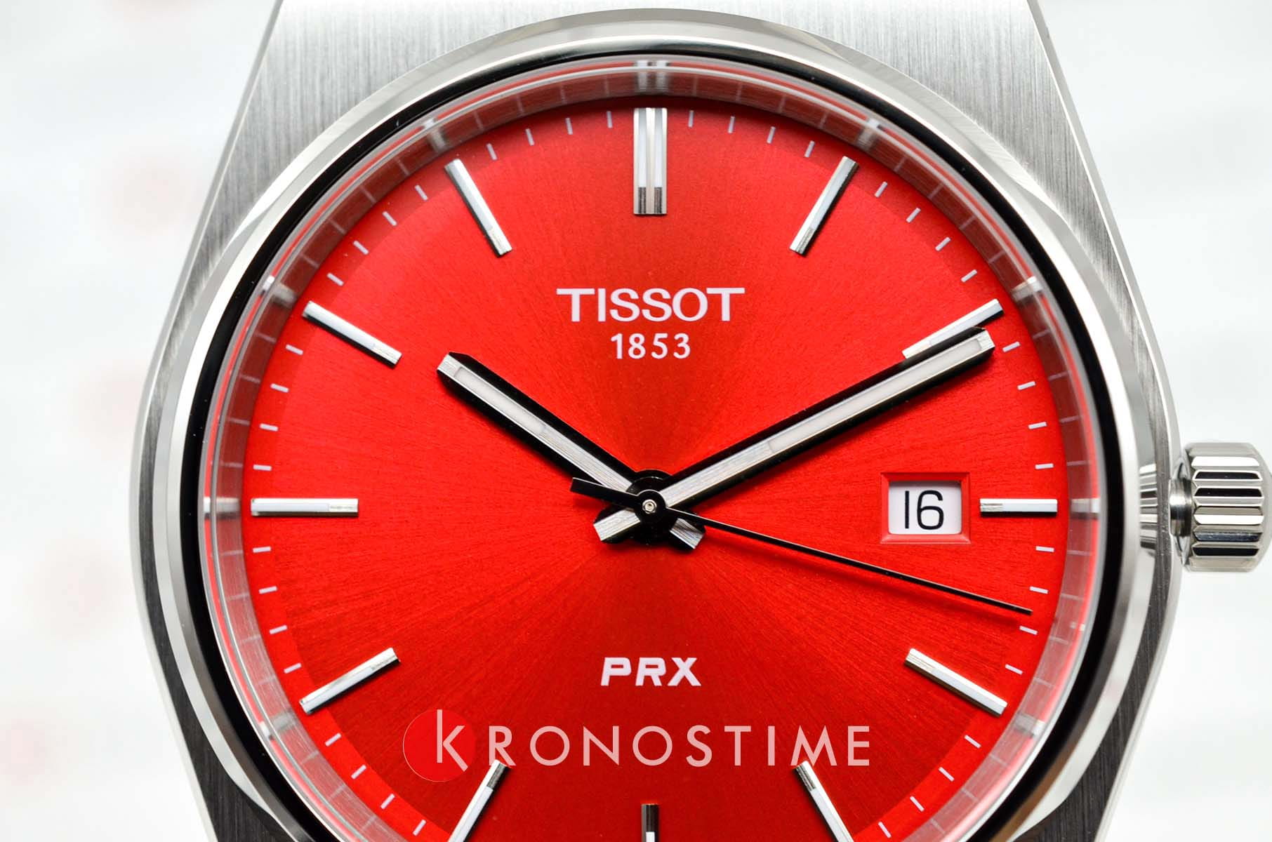 Мужские часы Tissot PRX Quartz 40 мм T137.410.11.421.00 выполнены в классическом круглом корпусе диаметром 40 мм из нержавеющей стали 316L, что обеспечивает высокую прочность и устойчивость к внешним воздействиям. Модель оснащена кварцевым механизмом с функцией индикации окончания срока службы батареи EOLEOLПредставляет собой систему, уведомляющую владельца часов о необходимости замены элемента питания. За 2 недели до полного разряда батарейки секундная стрелка перестаёт ходить чётко и начинает перепрыгивать на 3-4 деления., питание от батарейки типа Renata 371. Это гарантирует точность хода и минимальное обслуживание. Циферблат красного цвета дополнен индексами, а также стрелками и метками с люминесцентным покрытием Super-LumiNova® люминесцентным покрытиемЛюминесцентное покрытиеПозволяет считывать показания времени в темноте. Производители наносят на стрелки, часовые индексы, безель или поверхность циферблата светонакопительный состав, дающий холодное свечение. для лучшей читаемости в темноте. Функция отображения даты находится на 3 часах, что делает её легко доступной. Защиту циферблата обеспечивает сапфировое стекло сапфировое стеклоСапфировое стеклоПрочный и надёжный материал из кристалла сапфира синтетического происхождения, характеризующийся особой твёрдостью и устойчивостью к царапинам и повреждениям. с антибликовым покрытием антибликовым покрытиемАнтибликовое покрытиеСлой оксида металла в 0,13-0,3 микрон, благодаря которому стекло часов не бликует и не отражает свет. Антибликовое покрытие уменьшает отражение света в 10 раз, обеспечивая отличную читаемость показателей циферблата., защищающее от царапин и улучшающее восприятие информации. Водозащита позволяет использовать часы в повседневных условиях без риска повреждения от случайных брызг воды. Часы установлены на металлический браслет из нержавеющей стали 316L с застёжкой-бабочкой с кнопками застёжка-бабочка с кнопкамиЗастёжка "бабочка"Такой вид застёжки дополняется предохранителями, помогающими избежать случайного раскрытия браслета. Обладают изящным исполнением. , обеспечивающей комфорт и надёжную фиксацию на запястье. Браслет можно быстро заменить благодаря системе быстросъёмных звеньев. Часы являются сочетанием швейцарского качества, технологичности и современного дизайна для уверенных в себе мужчин.