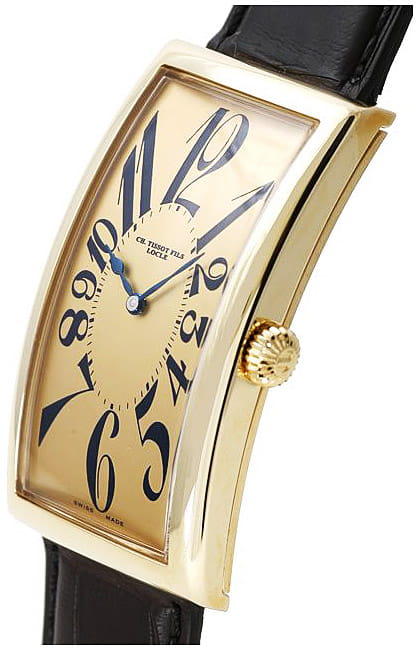 Аксессуар выполнен в стиле ретро, оригинальная изогнутая форма корпуса получила название «банан». Наручные часы идеально прилегают к запястью, винтажный дизайн находится на пике моды. Синие стрелки облегчают читаемость циферблата. Кварцевый механизм ETA 2660 отличается высокой точностью хода. Выпуклое хезалитовое стекло. Корпус из желтого 18-каратного золото18-каратное золотоОбозначение по каратной системе пробирования, оно показывает, сколько драгоценного металла содержится в изделии. 18 карат - в составе 75% чистого золота, соответствует 750 пробе.
