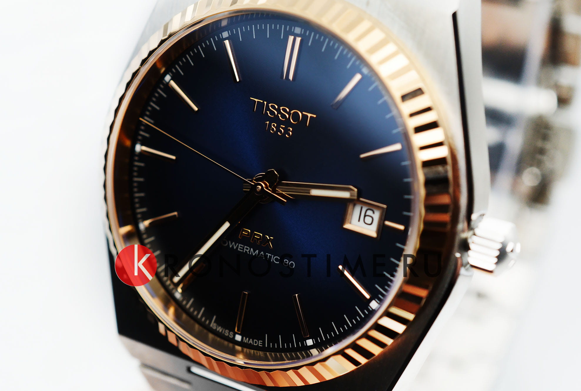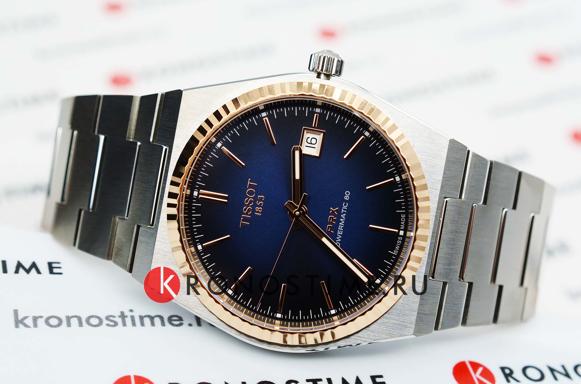 Швейцарские мужские механические часы Tissot PRX Powermatic 80 18K Gold Bezel T931.407.41.041.00