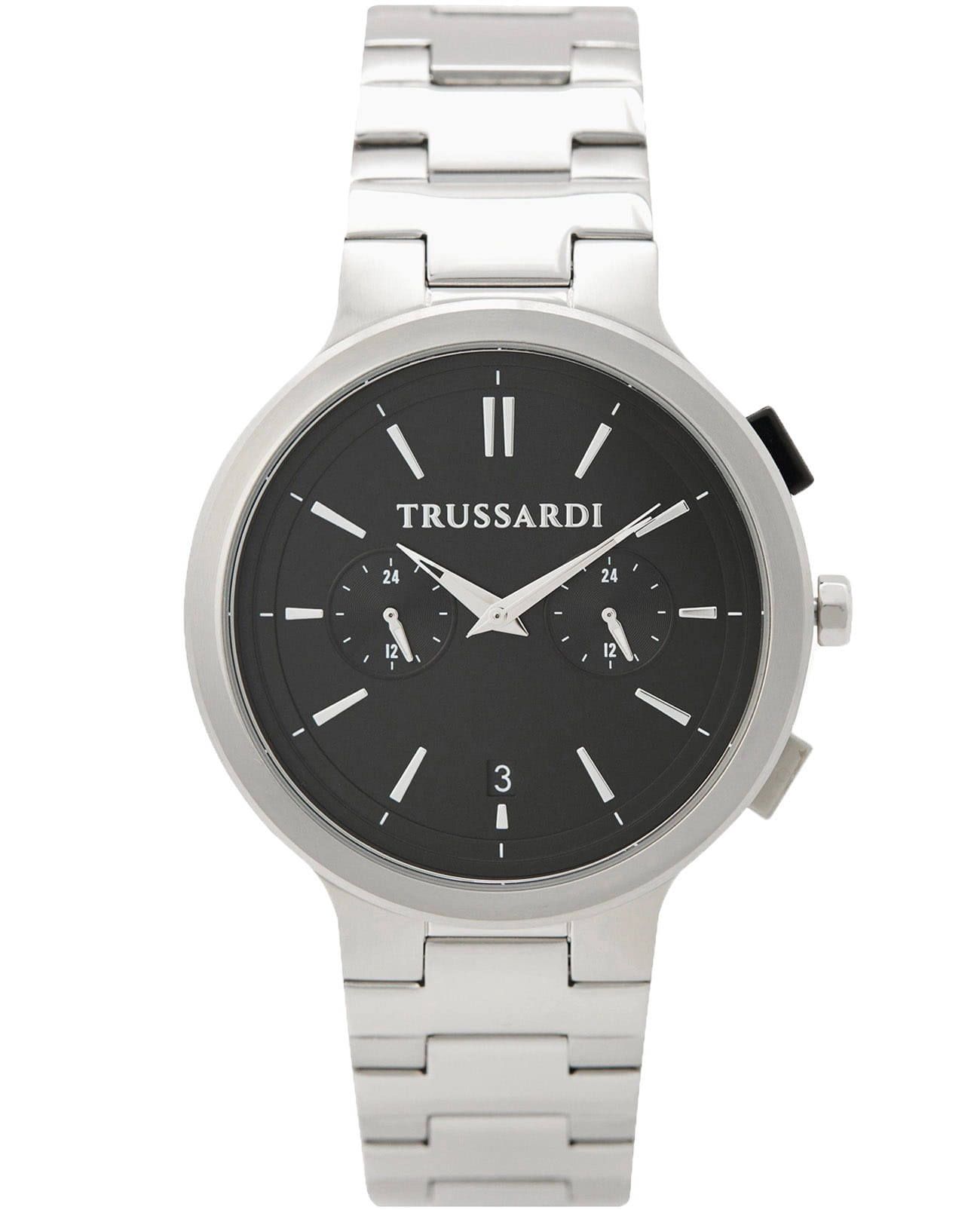 Итальянские мужские часы Trussardi Loud R2453164006 - это стильный мужской аксессуар, который сочетает элегантный дизайн и практичность. Корпус выполнен из нержавеющей стали, что обеспечивает долговечность и утончённый внешний вид. Надежное минеральное стеклоМинеральное стеклоМинеральное стекло представляет собой искусственно выращенный минерал кварца. Такое стекло отличается особой устойчивостью к повреждениям и царапинам. Уступает по некоторым качествам сапфировому стеклу. защищает циферблат от царапин и обеспечивает долговечность. Стрелки оснащены люминесцентным покрытиемЛюминесцентное покрытиеПозволяет считывать показания времени в темноте. Производители наносят на стрелки, часовые индексы, безель или поверхность циферблата светонакопительный состав, дающий холодное свечение., обеспечивающим отличную видимость даже при слабом освещении. Модель оснащена кварцевым механизмом, обеспечивающим высокую точность хода. Вынесенный циферблат с 24-х часовым указателем времени, второй часовой пояс в 24-х часовом формате. Окошко даты в положении 6 часов. Браслет из нержавеющей стали с раскладной застёжкойРаскладная застёжкаТакой тип застёжки используется только на браслетах из металла. Она никогда не раскрывается полностью, происходит разделение на 2 и более частей. Раскладывающая застёжка снизит вероятность потери часов к минимуму. обеспечивает комфортное ношение. Водозащита 50 метров позволит защитить корпус от случайных брызг или капель дождя. Эта модель – отличный выбор для тех, кто ищет сочетание стиля, качества и функциональности. Часы станут не только полезным аксессуаром, но и выразительным элементом вашего имиджа.