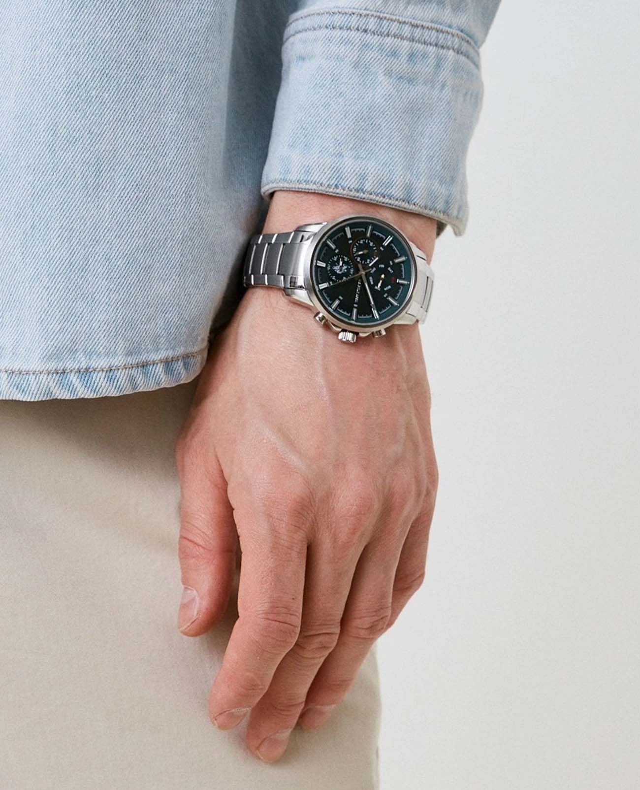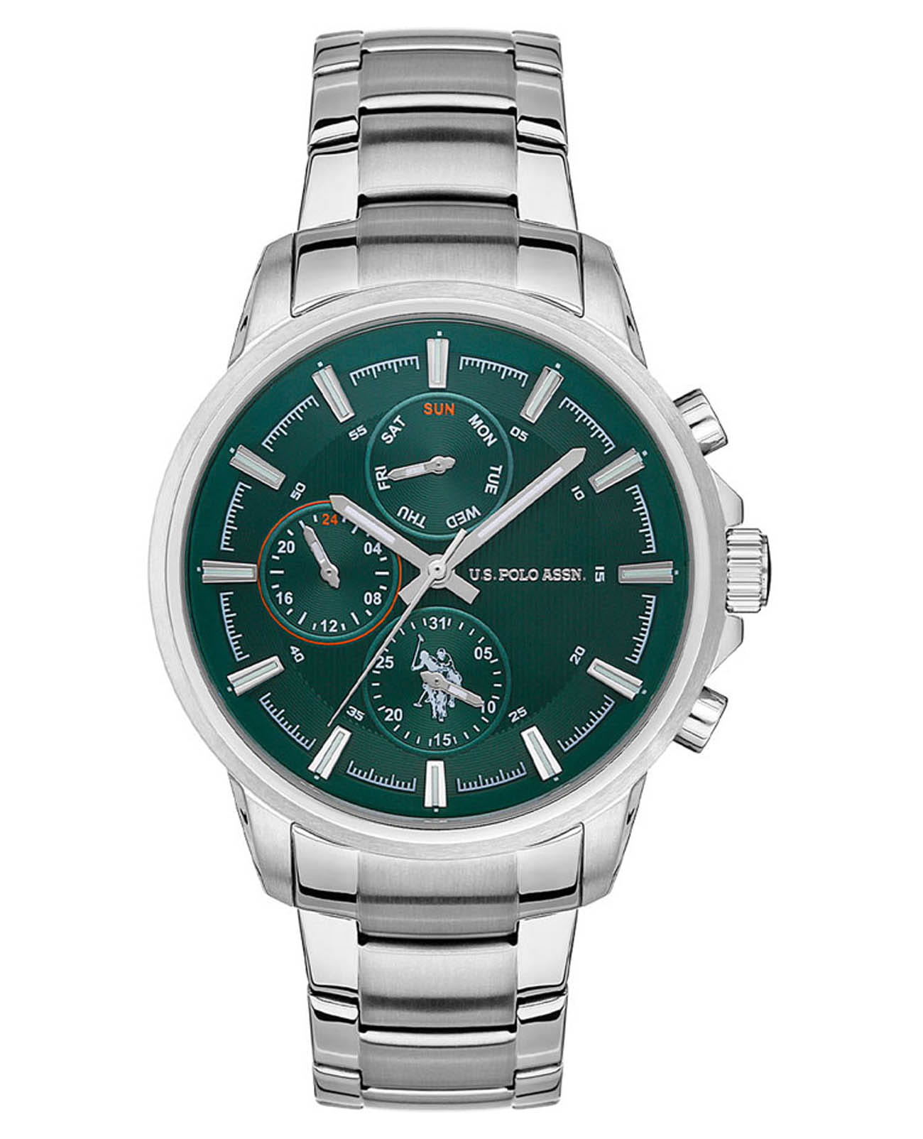 Мужские часы U.S. Polo Assn. Crossing USPA1016-09, кварцевый механизм с высокой точностью. Минеральное стеклоМинеральное стеклоМинеральное стекло представляет собой искусственно выращенный минерал кварца. Такое стекло отличается особой устойчивостью к повреждениям и царапинам. Уступает по некоторым качествам сапфировому стеклу. устойчивое к появлению царапин, обладающее высокой прозрачностью. Корпус и браслет изготовлены из нержавеющей стали. На циферблате три дополнительных индикатора. Центральные часовая, минутная и секундная стрелки. Индикация даты и дня недели. 12/24х часовой формат времени. Стрелки и метки с люминесцентным покрытиемЛюминесцентное покрытиеПозволяет считывать показания времени в темноте. Производители наносят на стрелки, часовые индексы, безель или поверхность циферблата светонакопительный состав, дающий холодное свечение.. Класс водозащиты: 50 метров, позволит защитить корпус от случайных брызг или капель дождя. Стальной браслет на застёжке «бабочка» с кнопкамиЗастёжка "бабочка"Такой вид застёжки дополняется предохранителями, помогающими избежать случайного раскрытия браслета. Обладают изящным исполнением. .