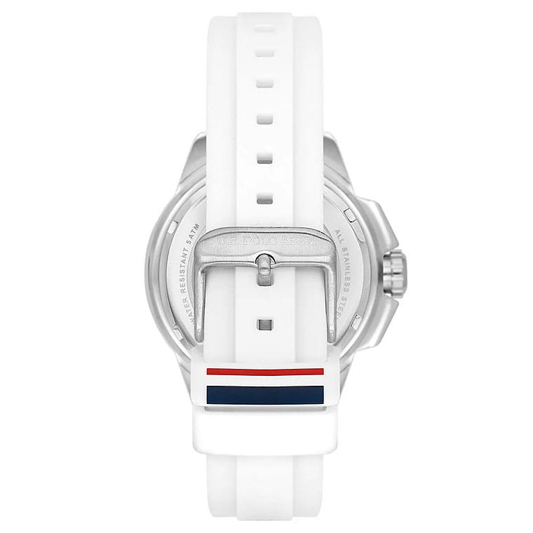 Мужские изысканные американские часы U.S. Polo Assn. Crossing USPA1066-01, кварцевый механизм с высокой точностью. Минеральное стеклоМинеральное стеклоМинеральное стекло представляет собой искусственно выращенный минерал кварца. Такое стекло отличается особой устойчивостью к повреждениям и царапинам. Уступает по некоторым качествам сапфировому стеклу. устойчивое к появлению царапин, обладающее высокой прозрачностью. Корпус изготовлен из нержавеющей стали с поворотным безелемБезельВнешний ободок, закрепляющий стекло. В спортивных часах так называется поворотное кольцо с делениями на циферблате, выполняет роль таймера – замеряет отрезки времени на шкале. Неподвижный безель – элемент декора. Однонаправленно вращающийся безель на дайверских часах позволяет фиксировать моменты погружения и выныривания на поверхность.. На стильном синем циферблате три дополнительных индикатора. Центральные часовая, минутная и секундная стрелки. Индикация даты и дня недели. 12/24х часовой формат времени. Класс водозащиты: 50 метров, позволит защитить корпус от случайных брызг или капель дождя. Силиконовый ремешок белого цвета со стандартной застежкой безупречно дополняет корпус. Стрелки оснащены люминесцентным покрытиемЛюминесцентное покрытиеПозволяет считывать показания времени в темноте. Производители наносят на стрелки, часовые индексы, безель или поверхность циферблата светонакопительный состав, дающий холодное свечение., обеспечивающим хорошую читаемость в темноте. Модель подчёркивает индивидуальность владельца и идеально подходит как для повседневного, так и для делового образа.