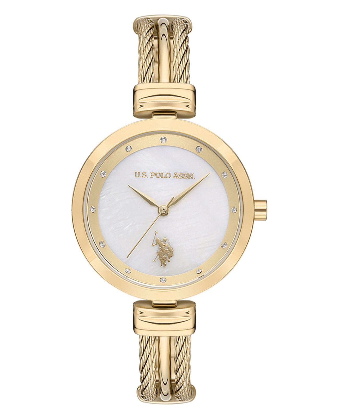 Женские часы U.S. Polo Assn Stile USPA2029-02, кварцевый механизм с высокой точностью. Минеральное стеклоМинеральное стеклоМинеральное стекло представляет собой искусственно выращенный минерал кварца. Такое стекло отличается особой устойчивостью к повреждениям и царапинам. Уступает по некоторым качествам сапфировому стеклу. устойчивое к появлению царапин, обладающее высокой прозрачностью. Корпус изготовлен из нержавеющей стали с IP-покрытиемIP-покрытиеМетод ионного напыления. Демонстрирует повышенную устойчивость к истиранию, окислению и химическим веществам. Под воздействием высокого давления и температуры около 1500°C молекулы металла надёжно соединяются с частицами корпуса часов.. Циферблат украшен кристаллами. Класс водозащиты: 50 метров, позволит защитить корпус от случайных брызг или капель дождя. Стальной браслет с IP-покрытиемIP-покрытиеМетод ионного напыления. Демонстрирует повышенную устойчивость к истиранию, окислению и химическим веществам. Под воздействием высокого давления и температуры около 1500°C молекулы металла надёжно соединяются с частицами корпуса часов. на ювелирной застёжке.