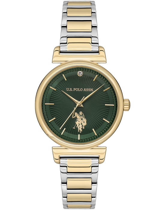 Женские часы U.S. Polo Assn. USPA2070-05 кварцевый механизм с высокой точностью. Минеральное стеклоМинеральное стеклоМинеральное стекло представляет собой искусственно выращенный минерал кварца. Такое стекло отличается особой устойчивостью к повреждениям и царапинам. Уступает по некоторым качествам сапфировому стеклу. устойчивое к появлению царапин, обладающее высокой прозрачностью. Корпус изготовлен из нержавеющей стали. Класс водозащиты: 50 метров, позволит защитить корпус от случайных брызг или капель дождя. Стальной браслет на раскладной застёжкеРаскладная застёжкаТакой тип застёжки используется только на браслетах из металла. Она никогда не раскрывается полностью, происходит разделение на 2 и более частей. Раскладывающая застёжка снизит вероятность потери часов к минимуму. IP-покрытиемIP-покрытиеМетод ионного напыления. Демонстрирует повышенную устойчивость к истиранию, окислению и химическим веществам. Под воздействием высокого давления и температуры около 1500°C молекулы металла надёжно соединяются с частицами корпуса часов.. Неподвижный безельБезельВнешний ободок, закрепляющий стекло. В спортивных часах так называется поворотное кольцо с делениями на циферблате, выполняет роль таймера – замеряет отрезки времени на шкале. Неподвижный безель – элемент декора. Однонаправленно вращающийся безель на дайверских часах позволяет фиксировать моменты погружения и выныривания на поверхность. с IP-покрытиемIP-покрытиеМетод ионного напыления. Демонстрирует повышенную устойчивость к истиранию, окислению и химическим веществам. Под воздействием высокого давления и температуры около 1500°C молекулы металла надёжно соединяются с частицами корпуса часов..