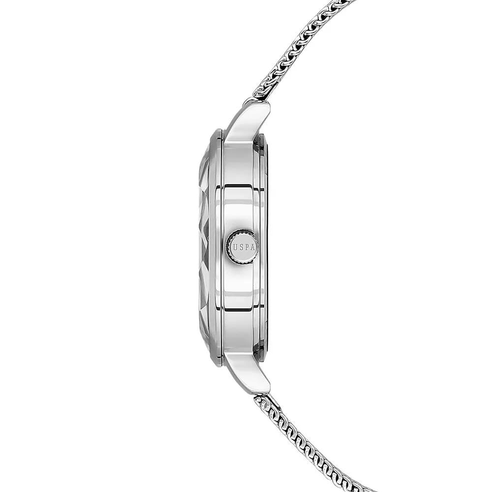 Женские часы U.S. Polo Assn. Stile USPA2079-06, кварцевый механизм с высокой точностью. Минеральное стеклоМинеральное стеклоМинеральное стекло представляет собой искусственно выращенный минерал кварца. Такое стекло отличается особой устойчивостью к повреждениям и царапинам. Уступает по некоторым качествам сапфировому стеклу. устойчивое к появлению царапин, обладающее высокой прозрачностью. Изысканный корпус изготовлен из нержавеющей стали. Лаконичные центральные часовая, минутная и секундная стрелки. Водонепроницаемость 5 АТМ позволяет использовать часы в повседневных условиях — при мытье рук или под лёгким дождём. Браслет выполнен в технике миланского плетения из стали и оснащён раскладным замкомРаскладная застёжкаТакой тип застёжки используется только на браслетах из металла. Она никогда не раскрывается полностью, происходит разделение на 2 и более частей. Раскладывающая застёжка снизит вероятность потери часов к минимуму., обеспечивающий комфорт и уверенную фиксацию на запястье, а также добавляя завершающий штрих к этому стильному аксессуару. Циферблат с кристаллами подчёркивает изысканный характер часов, создавая универсальный образ, подходящий как для повседневных ситуаций, так и для особых случаев.