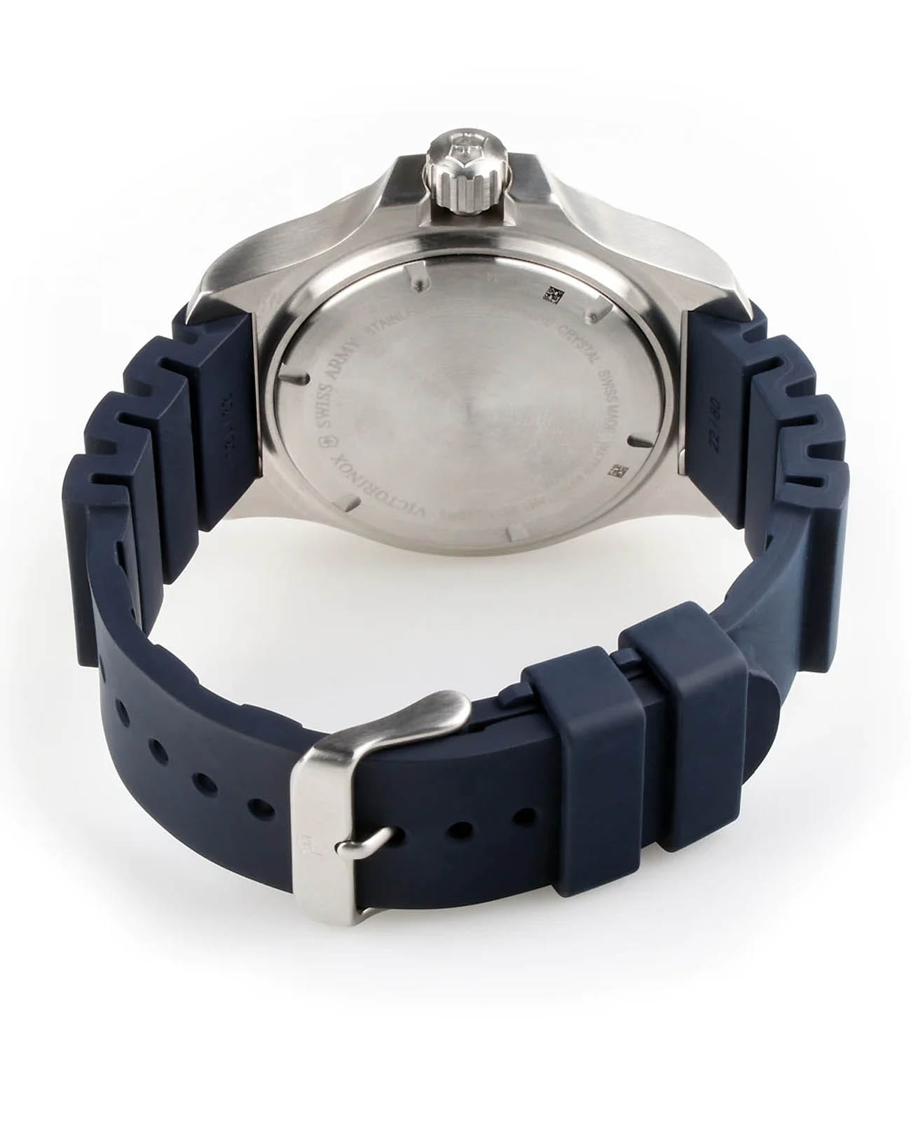 Мужские наручные часы Victorinox 241734 с надежным кварцевым механизмом. Сапфировое стеклоСапфировое стеклоПрочный и надёжный материал из кристалла сапфира синтетического происхождения, характеризующийся особой твёрдостью и устойчивостью к царапинам и повреждениям. с антибликовым покрытием. Степень водозащиты: 200 метров, позволит плавать, нырять и заниматься другими водными видами спорта. Корпус часов выполнен из нержавеющей стали 316L. Окошко даты находится в положении между 4 и 5 часов. Стрелки и метки с люминесцентным покрытиемЛюминесцентное покрытиеПозволяет считывать показания времени в темноте. Производители наносят на стрелки, часовые индексы, безель или поверхность циферблата светонакопительный состав, дающий холодное свечение..