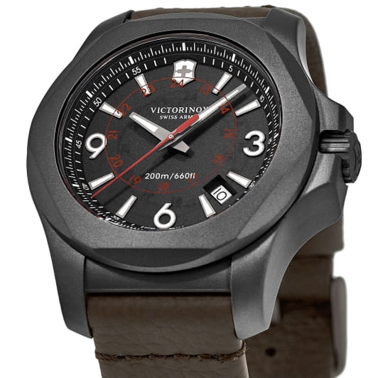 Мужские швейцарские часы Victorinox I.N.O.X. Titanium 241778, кварцевый механизм с высокой точностью. Сапфировое стеклоСапфировое стеклоПрочный и надёжный материал из кристалла сапфира синтетического происхождения, характеризующийся особой твёрдостью и устойчивостью к царапинам и повреждениям. с трёхслойным антибликовым покрытием. Корпус часов выполнен из титана. Стрелки и метки с люминесцентным покрытиемЛюминесцентное покрытиеПозволяет считывать показания времени в темноте. Производители наносят на стрелки, часовые индексы, безель или поверхность циферблата светонакопительный состав, дающий холодное свечение.. Класс водозащиты: 200 метров, позволит плавать, нырять и заниматься другими водными видами спорта. Кожаный ремешок.