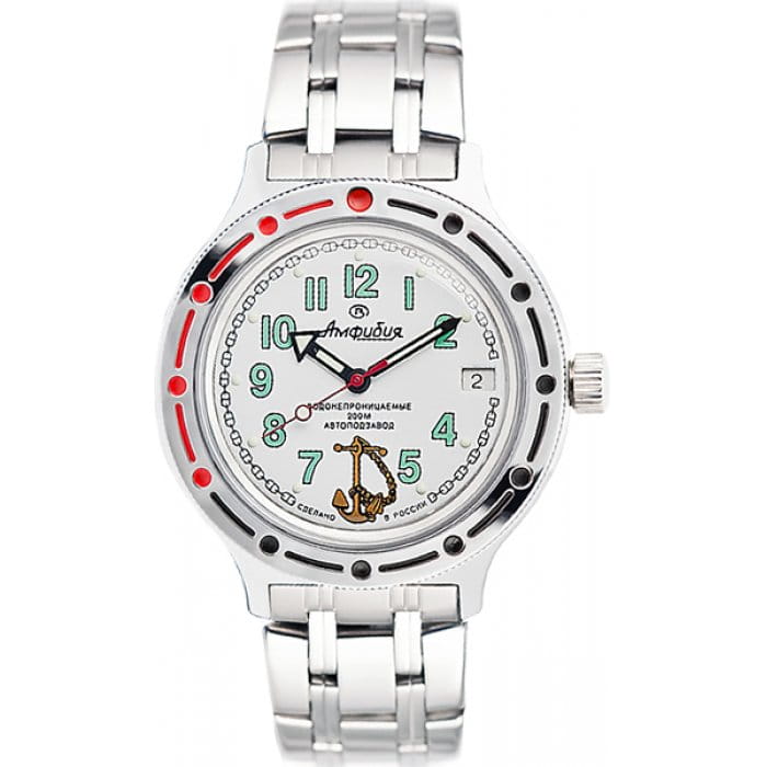 Стильные и удобные часы с автоподзаводом, достаточно элегантные, чтобы соответствовать неофициальному дресс-коду. Амфибия Классика. В механизме 31 камень. Запас хода 31 час. Противоударное устройство оси баланса. Вращающийся безель. Завинчивающаяся заводная головка. Браслет с раскладывающейся застежкой.