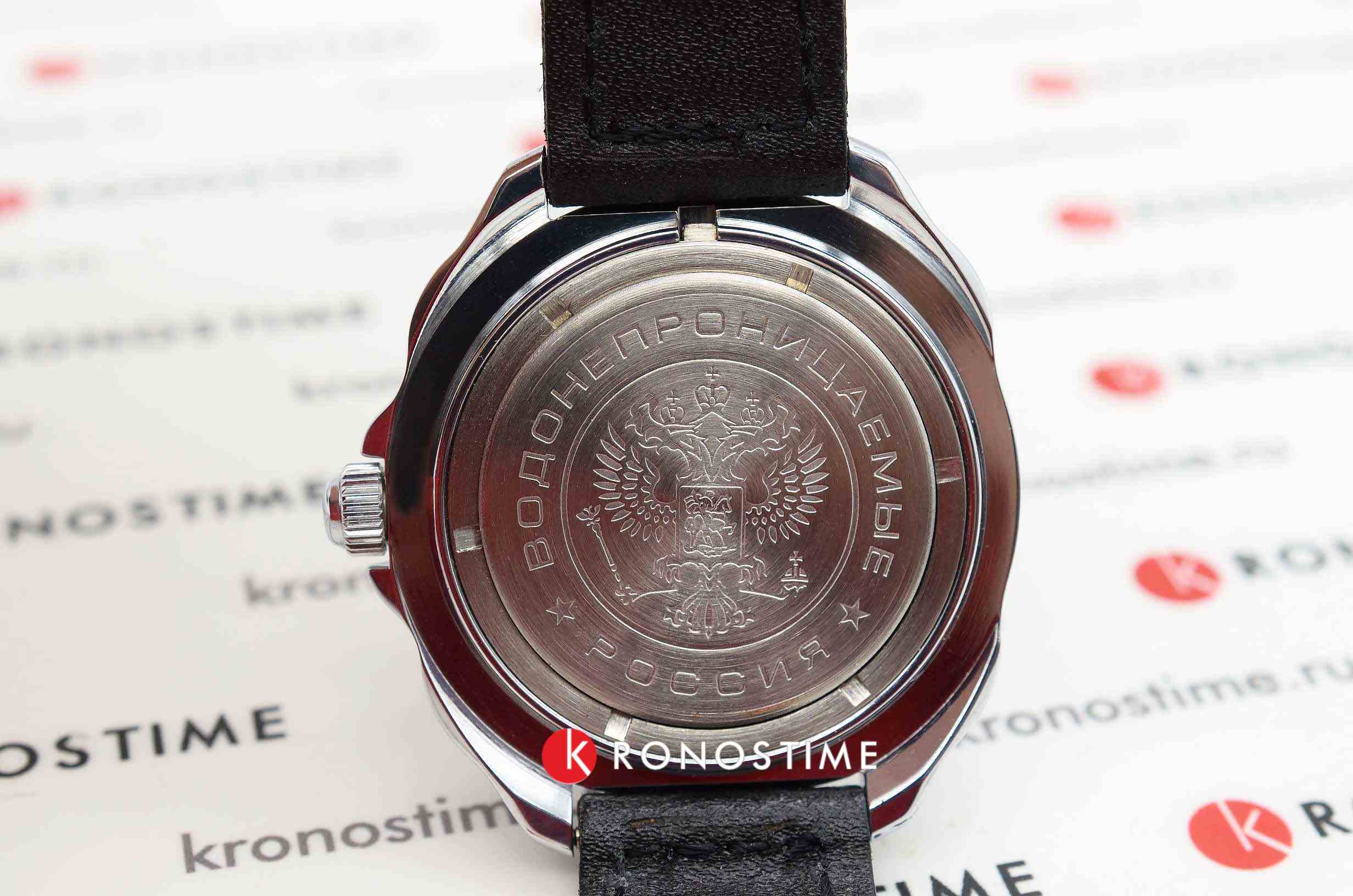 Механические часы Восток Командирские 211163 с гарантией. Механизм "Восток 2414А" калибра 24 мм с центральной секундной стрелкой. В механизме 17 камней. Запас хода не менее 36 часов. Противоударное устройство узла баланса. Поворачивающийся безель. На стрелки и часовые метки нанесен светонакопительный состав для возможности считывания времени в темноте. Циферблат закрывает выпуклое органическое стекло. Корпус выполнен из часовой латуни с покрытием хромом. Завинчивающаяся заводная головка. Задняя крышка из нержавеющей стали. Водозащита модели составляет 2 атмосферы (WR20). Толщина корпуса 11 мм. Ремешок из натуральной кожи с классической застежкой.