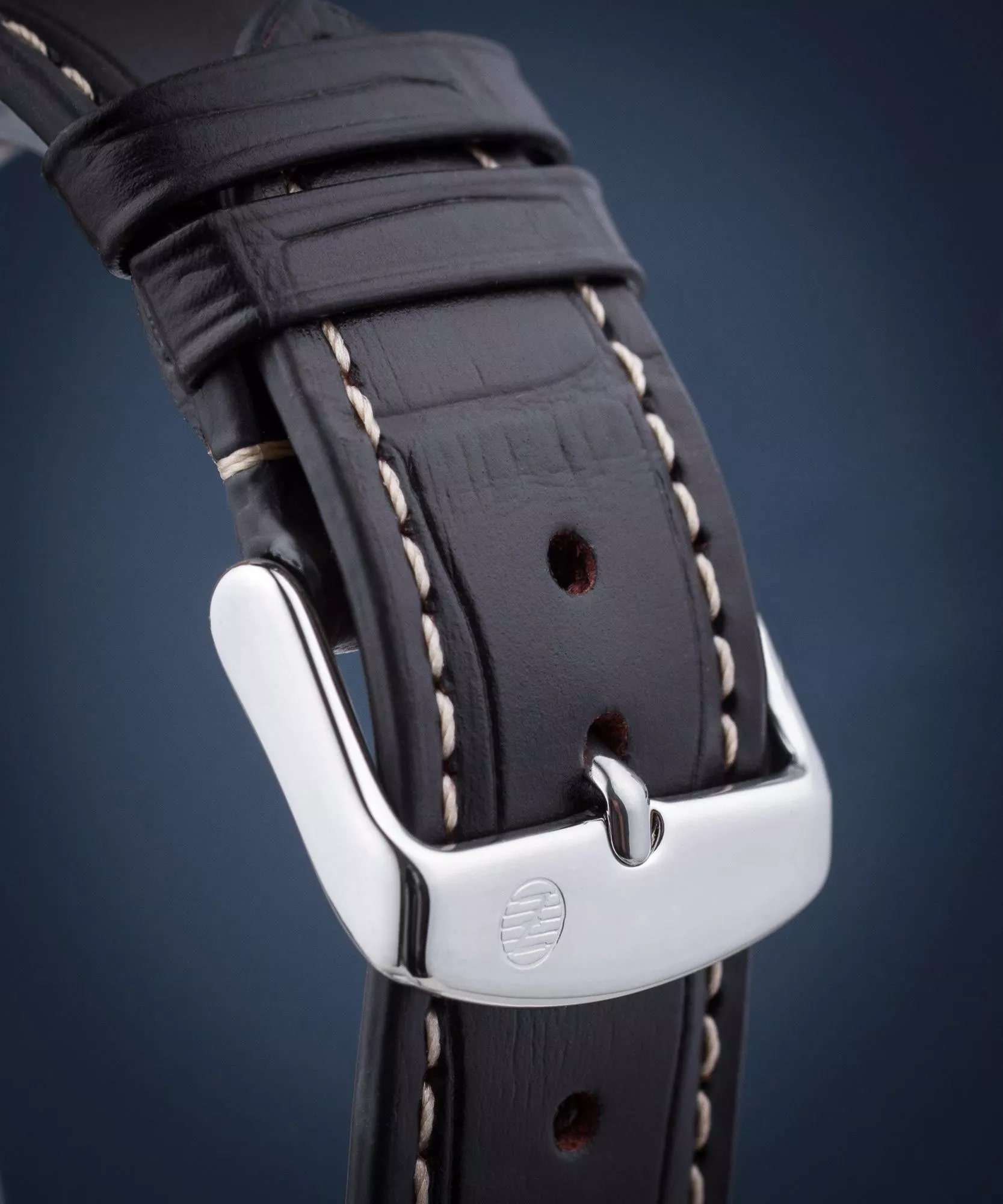 Zeppelin 100 Years Zeppelin ED.1 76801 – элегантные мужские часы, сочетающие классический дизайн и функциональность. Корпус диаметром 40 мм выполнен из нержавеющей стали, обеспечивая прочность и долговечность. Циферблат с арабскими цифрами и хронографическими счётчиками придаёт модели винтажный шарм и обеспечивает удобство считывания информации. Циферблат защищён минеральным стекломМинеральное стеклоМинеральное стекло представляет собой искусственно выращенный минерал кварца. Такое стекло отличается особой устойчивостью к повреждениям и царапинам. Уступает по некоторым качествам сапфировому стеклу., устойчивым к царапинам. Часы оснащены японским кварцевым механизмом, обеспечивающим точное отображение времени и надёжность. Функции хронографаХронографФункция позволяет измерять отрезки времени с особой точностью: часы, минуты, секунды. Верным признаком хронографа является наличие на циферблате 3 дополнительных окошек-счётчиков. позволяют измерять промежутки времени, что повышает практичность модели. Кожаный ремешок с классической пряжкой обеспечивает комфортное ношение и надёжную фиксацию на запястье. Водозащита до 50 метров (5 бар) делает часы подходящими для повседневного использования, защищая их от случайных брызг и дождя.