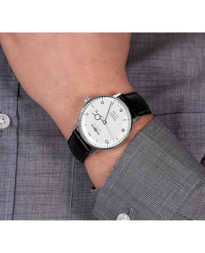 Мужские наручные часы Zeppelin ZEP-80621 из коллекции LZ129 Hindenburg сочетают в себе классический дизайн и надежность механического движения. Модель обладает круглым корпусом диаметром 41 мм, изготовленным из нержавеющей стали, что обеспечивает высокую устойчивость к внешним воздействиям. Браслет выполнен из натуральной кожи с классической застежкой, гарантирующей комфортное ношение. Белый циферблат оснащен накладными индексами и окном даты на «3 часах». Для защиты используется минеральное стеклоМинеральное стеклоМинеральное стекло представляет собой искусственно выращенный минерал кварца. Такое стекло отличается особой устойчивостью к повреждениям и царапинам. Уступает по некоторым качествам сапфировому стеклу., обеспечивающее прочную защиту от царапин. Часы работают на автоматическом механизме Miyota 821A японского производства, содержащем 21 драгоценный камень, что гарантирует точное время без необходимости ручного подзаводки. Водонепроницаемость часов достигает 5 атмосфер (50 метров), что позволяет использовать их во время плавания на поверхности, однако не рекомендуется для глубоководного дайвинга или занятий водными видами спорта с высоким уровнем активности.